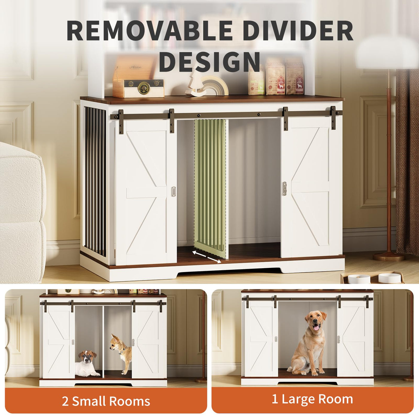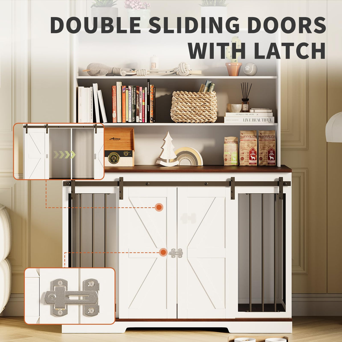 Dog Crate Furniture for 2 Dogs with Storage Shelves, 48 L x 23 W x 63 H Wooden Dog Crate with Double Doors, Heavy Sturdy Dog Ken