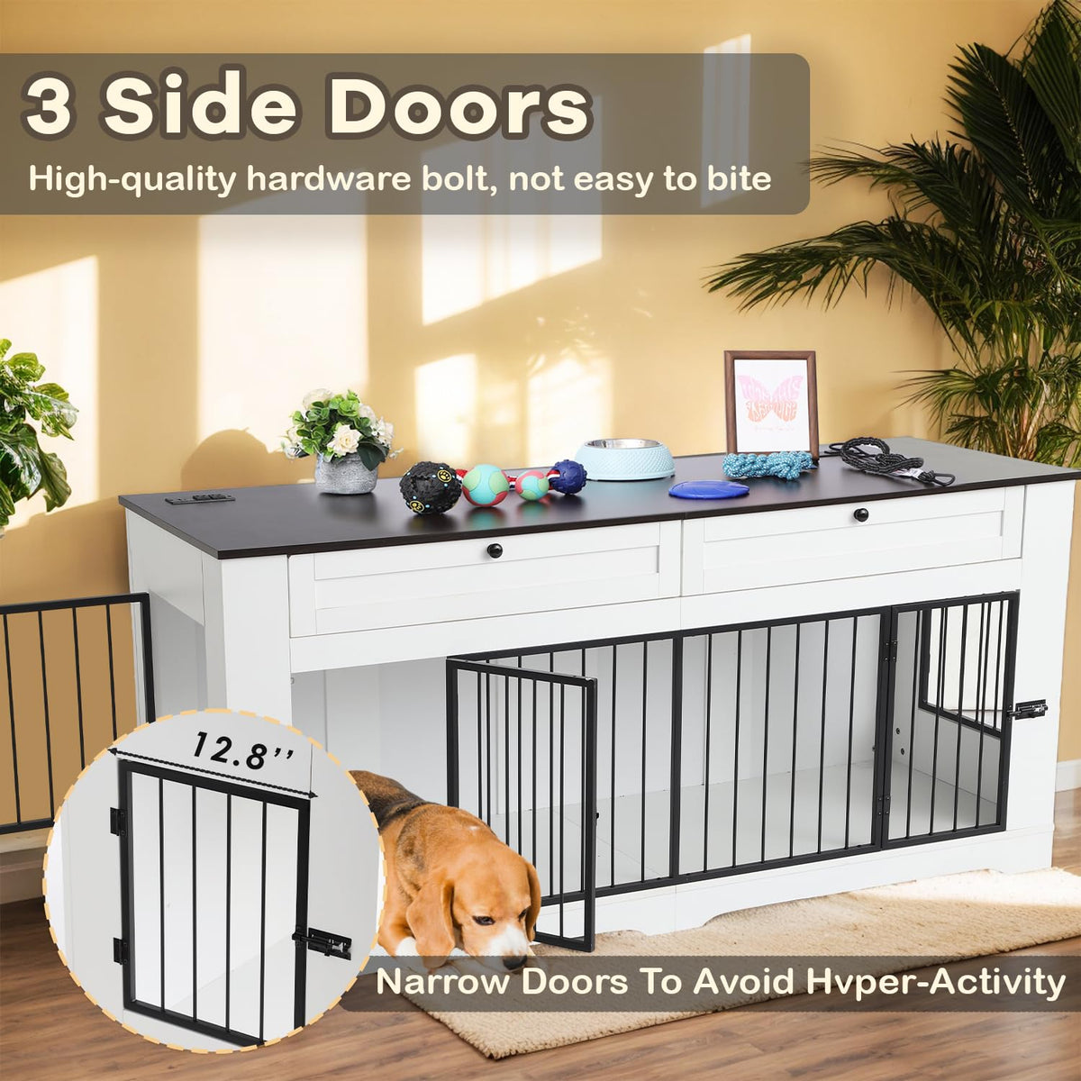 Dog Crate Furniture TV Stand with Charging Station-47.24 Heavy Duty Dog Kennel Furniture tv Table with 2 Drawers Storage,Indoor