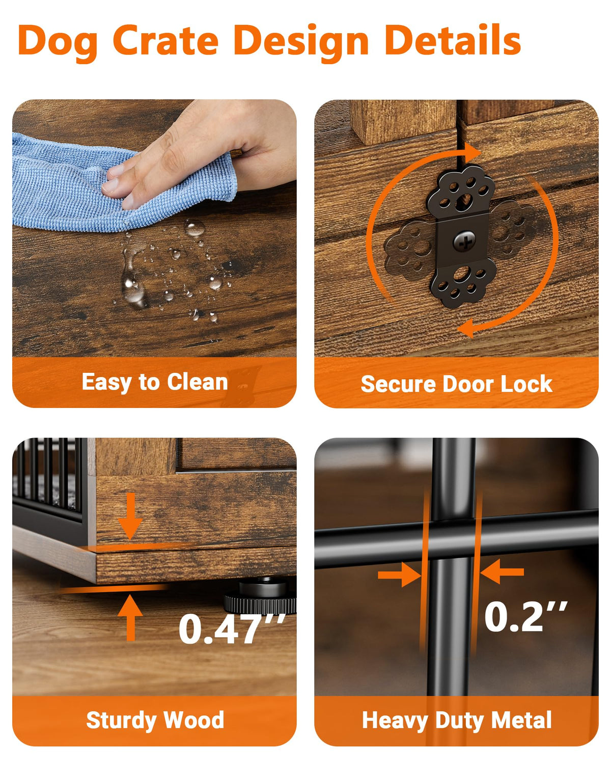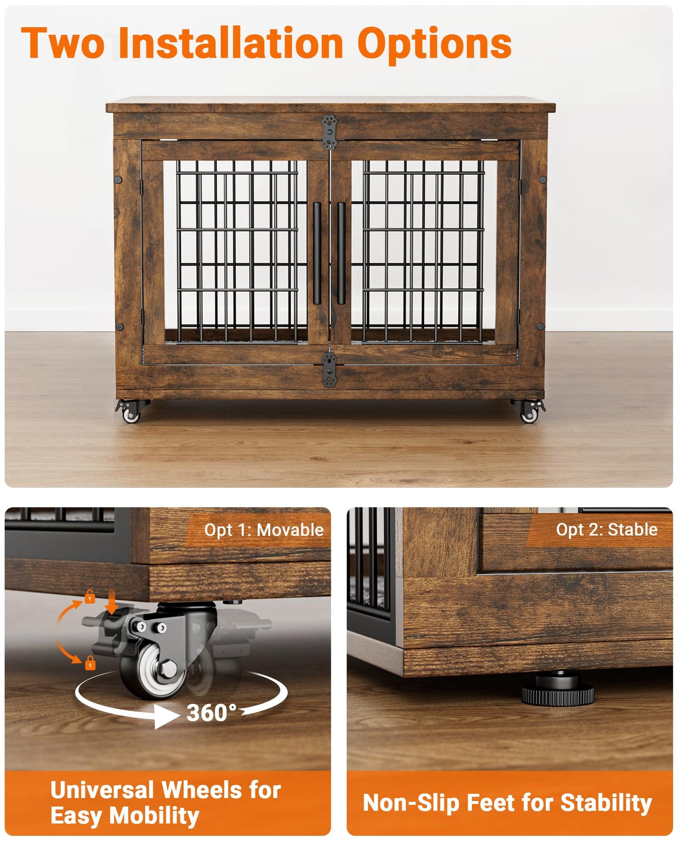 Why Choose YaFiti Furniture-Style Dog Crate Furniture?YaFiti Dog Crate - a multifunctional and sturdy dog crate that provides a comfortable and secure space for your pet. Whether you need a crate, a cozy den, or a stylish piece of furniture, this dog kennel has got you covered. Made from high-quality materials, this dog kennel indoor furniture has a sturdy construction and is chew-resistant. The wooden board structure at the bottom ensures your dog s feet are protected from harm. You can rest assured that your pet will stay safe and secure inside the crate. Featuring double doors, this dog crate furniture provides easy access for your dog. You can choose the side door to the left or right. For added convenience, this wooden crate comes with 360 lockable wheels or anti-slip feet. The 360 lockable wheels make moving the kennel around your home easy, allowing you to find the perfect spot for your pet. The upgraded door lock ensures that your pet stays safely inside the dog kennel furniture, while the cushion provides extra comfort during their stay. The included cushion provides a comfortable and cozy spot for your pet to relax and rest. The cushion is removable and machine washable, ensuring easy maintenance. Dog Crates for Medium Dogs Size:Overall Size: 32.5 L x 22.1 W x 25.2 HInner Size: 29 L x 19.6 W x 22 H Package Contents:1 x Furniture-style Dog Crate1 x Instructions Note:Make sure to measure your pet before selecting the dog crate size. The interior dimensions of the crate should be 1-2 inches taller and 4-5 inches longer than your pet.