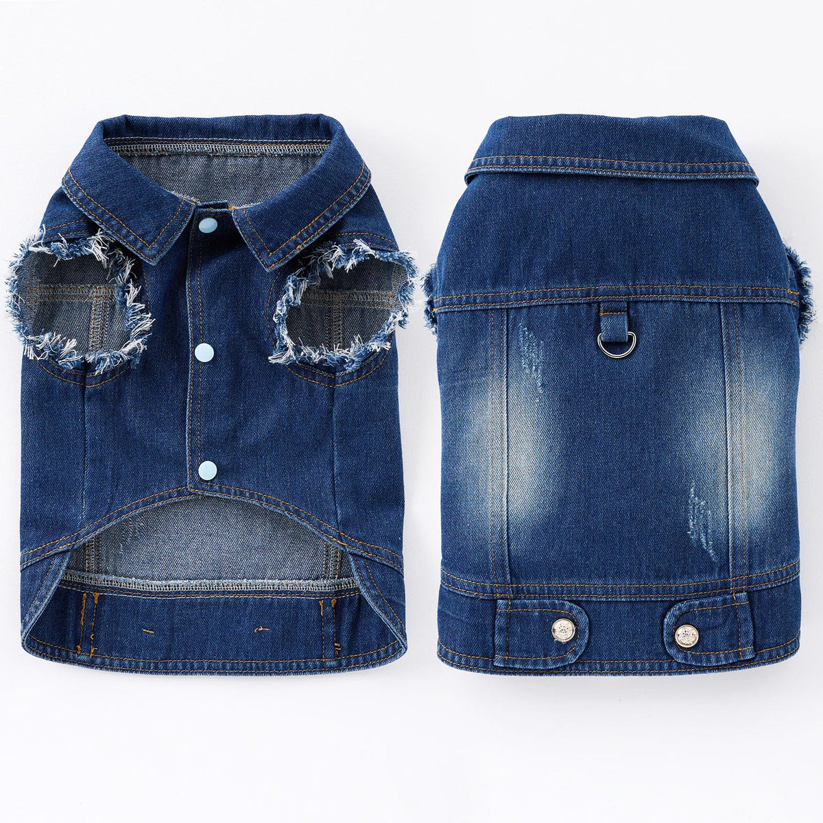 Dog Denim Jacket Vest - Leash Ring, Fringed Sleeves, Blue Jean, Classic Vintage Wash, Fits Small To Large Dogs(X-Large)