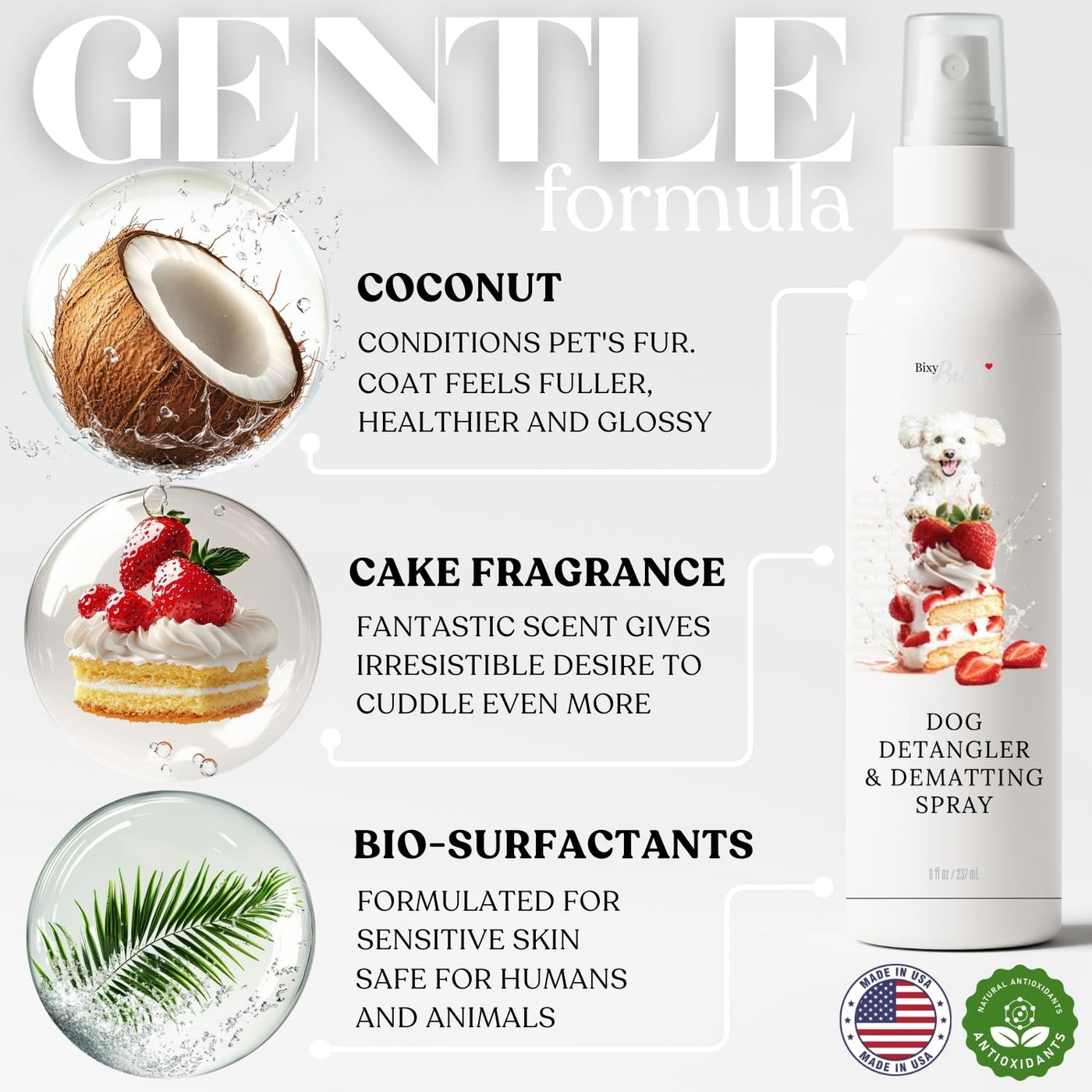 Dog Detangler Spray With Shortcake Fragrance - Natural Pet Nose Friendly Ingredients Used For Sensitive Skin - Dog Leave In Cond
