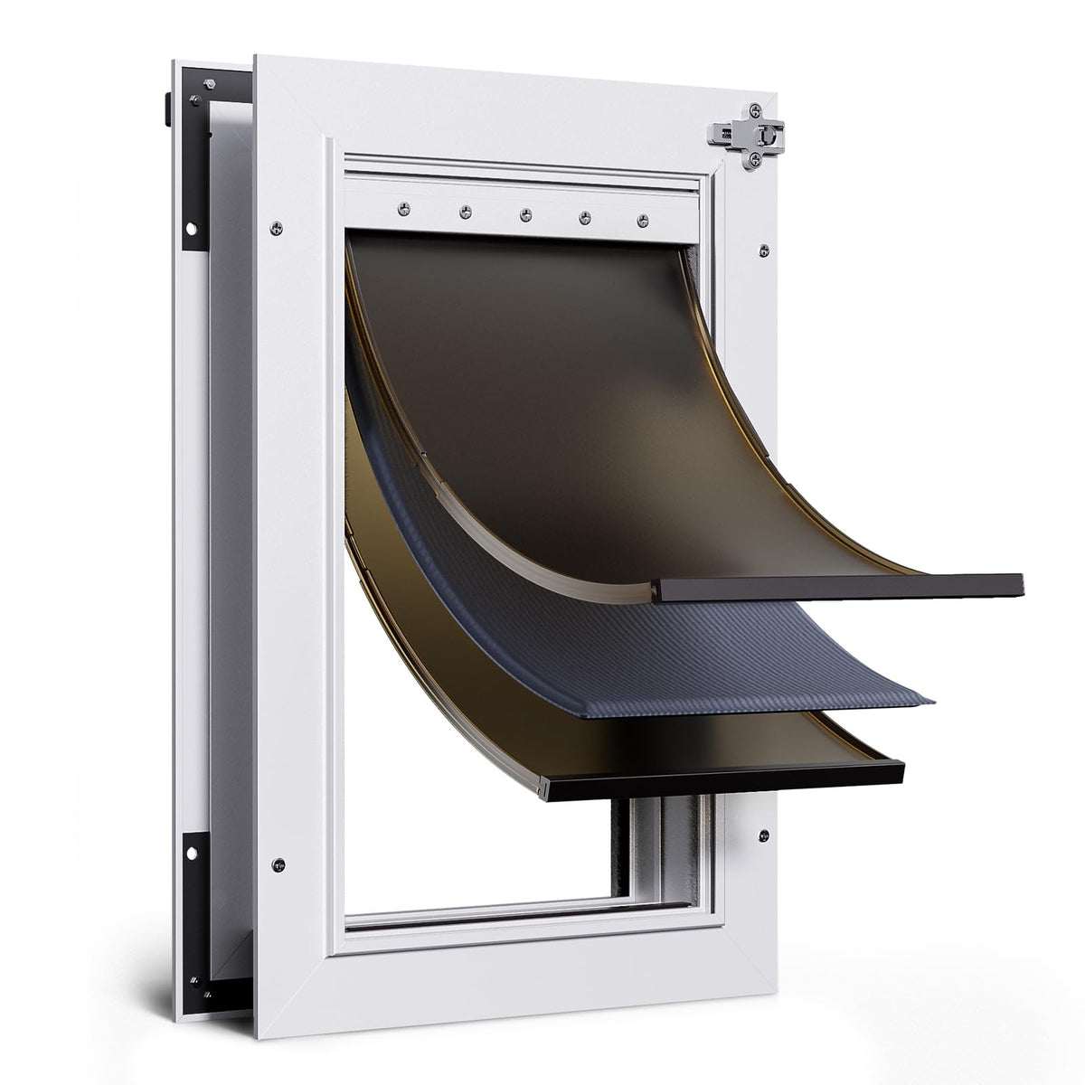 Dog Door For Door All Aluminum 3 Flaps White, Large Dog Doggy Doggie Door, Heavy Duty Pet Door For Dogs, With Insulation Flap An