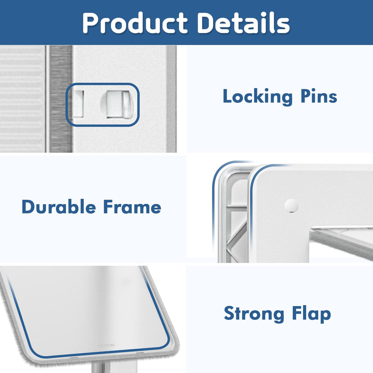 Sturdy | Our frame was made of high strength anti-shock plastic to prevent cracking and tearing. Upgrade thickening flap ensure durability and security for long-lasting use of this pet door.