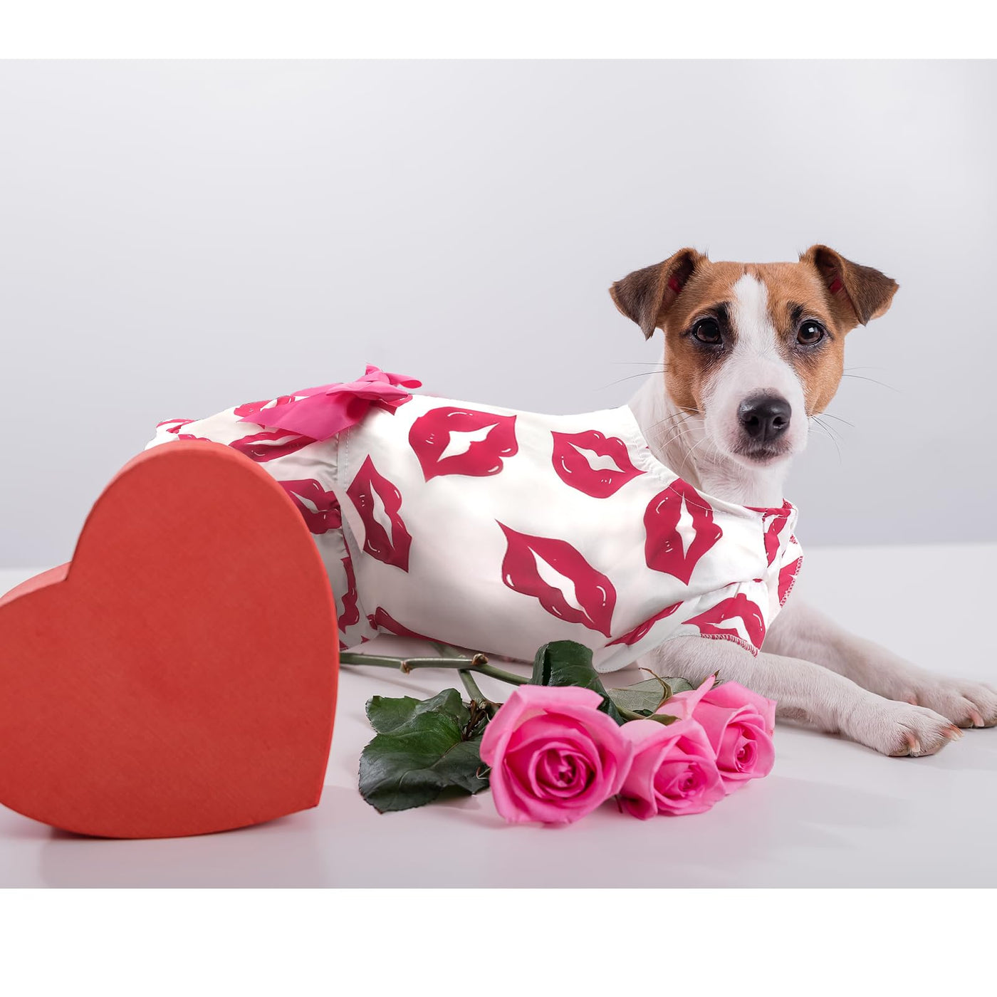 Celebrate Love This Valentines Day With Your Furry Friend In This Adorable Dog Dress. Featuring A White Base With Vibrant Red Kiss Prints And A Bright Pink Satin Bow, This Outfit Combines Elegance And Playfulness. Crafted From Lightweight, Breathable Fabric, It Ensures Your Pets Comfort During Special Occasions. The Durable Material Allows For Repeated Use. Available In Three Sizes (S: 6-7 Lbs, M: 8-9 Lbs, L: 11-13 Lbs), It Fits Perfectly For Dogs And Cats, Adding A Charming And Fun Touch To Their Wardrobe. Whether Youre Celebrating Valentines Day, Attending A Party, Or Taking Festive Photos, This Dress Ensures Your Pet Is The Center Of Attention. If You Have Questions About Sizing Or Fit, Our Dedicated Customer Service Team Is Here To Assist. Let Your Pet Celebrate Valentines Day In Style!