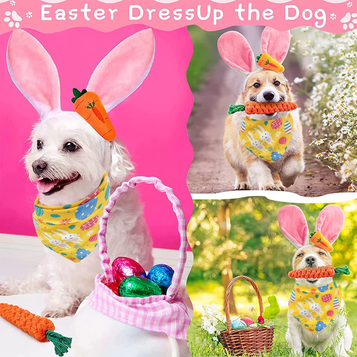 Dog Easter Bunny Costume, Pet Rabbit Ears Headband, Puppy Egg Bandana, Funny Carrot Dog Toy Set, Teeth Cleaning Chew Toys Gifts
