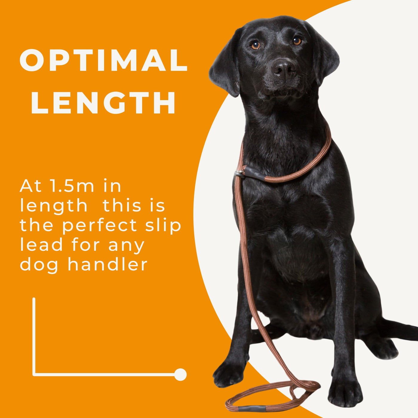 Dog & Field Deluxe Gundog Slip Leash - Brown. Super Soft Braided Nylon Slip Leash For Dogs With Rubber Stopper, Easy To Slip On,