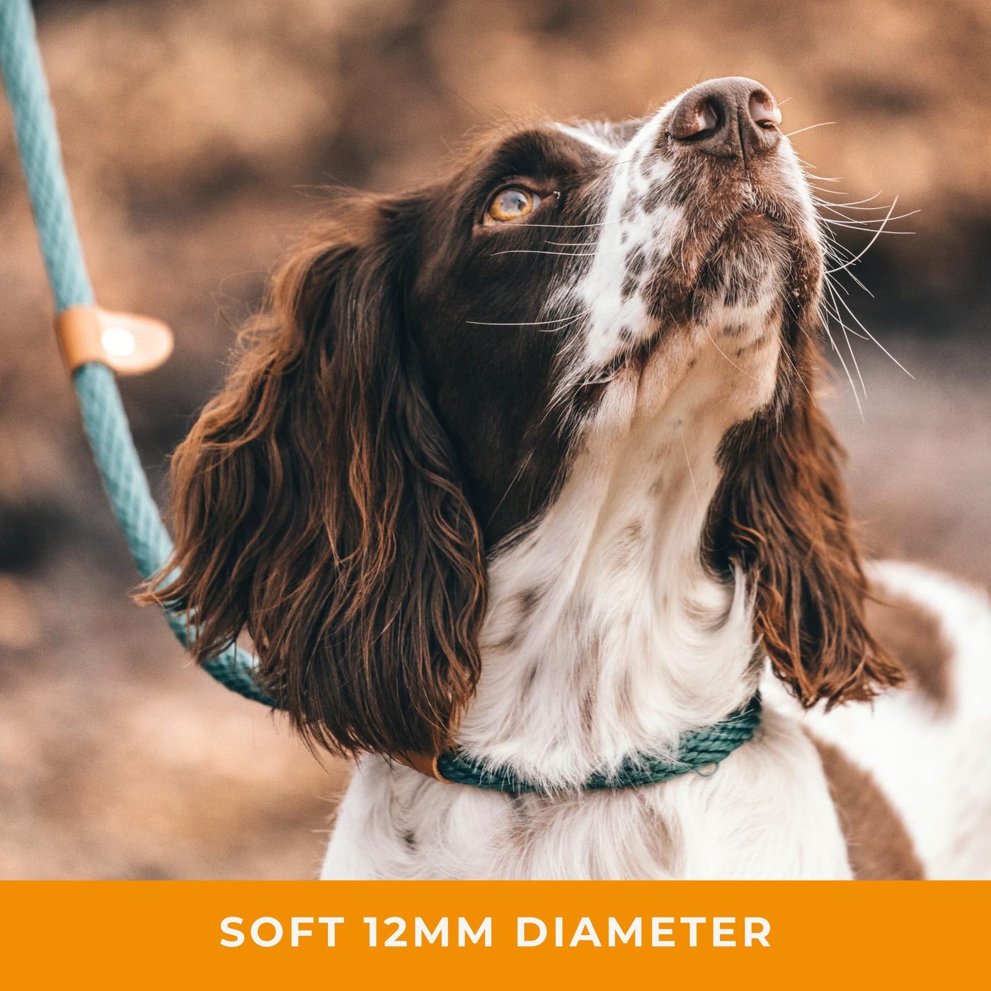 Dog & Field Lux Woven Slip Leash - Teal. 4Ft Slip Leash For Dogs, Soft Braided Rope Dog Lead With Brass Fittings & Leather Bindi