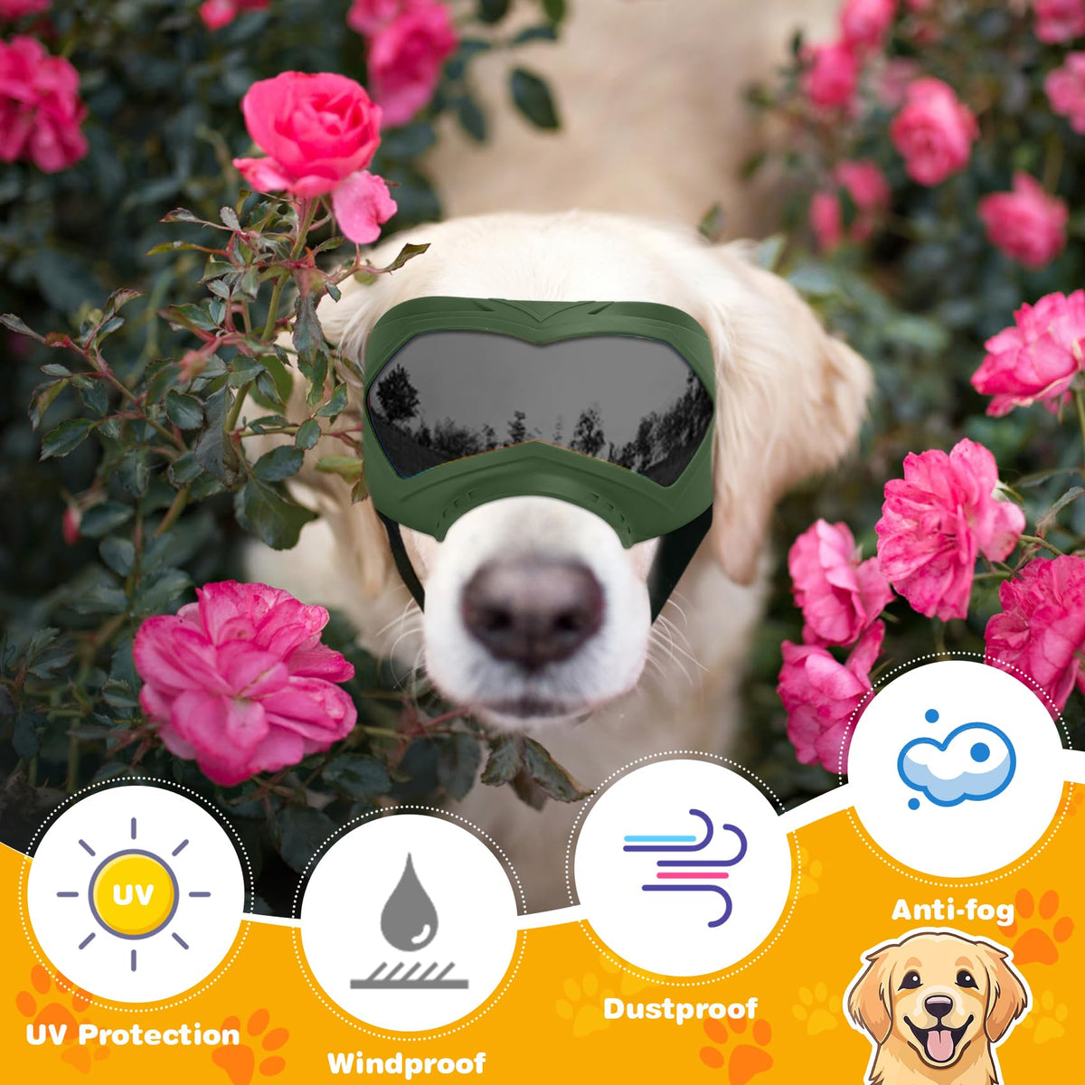 Dog Goggles, Uv Protection, Windproof, Dustproof, Anti-Fog Dog Sunglasses For Large & Medium Dogs, Lightweight Tpe Frame With Ad
