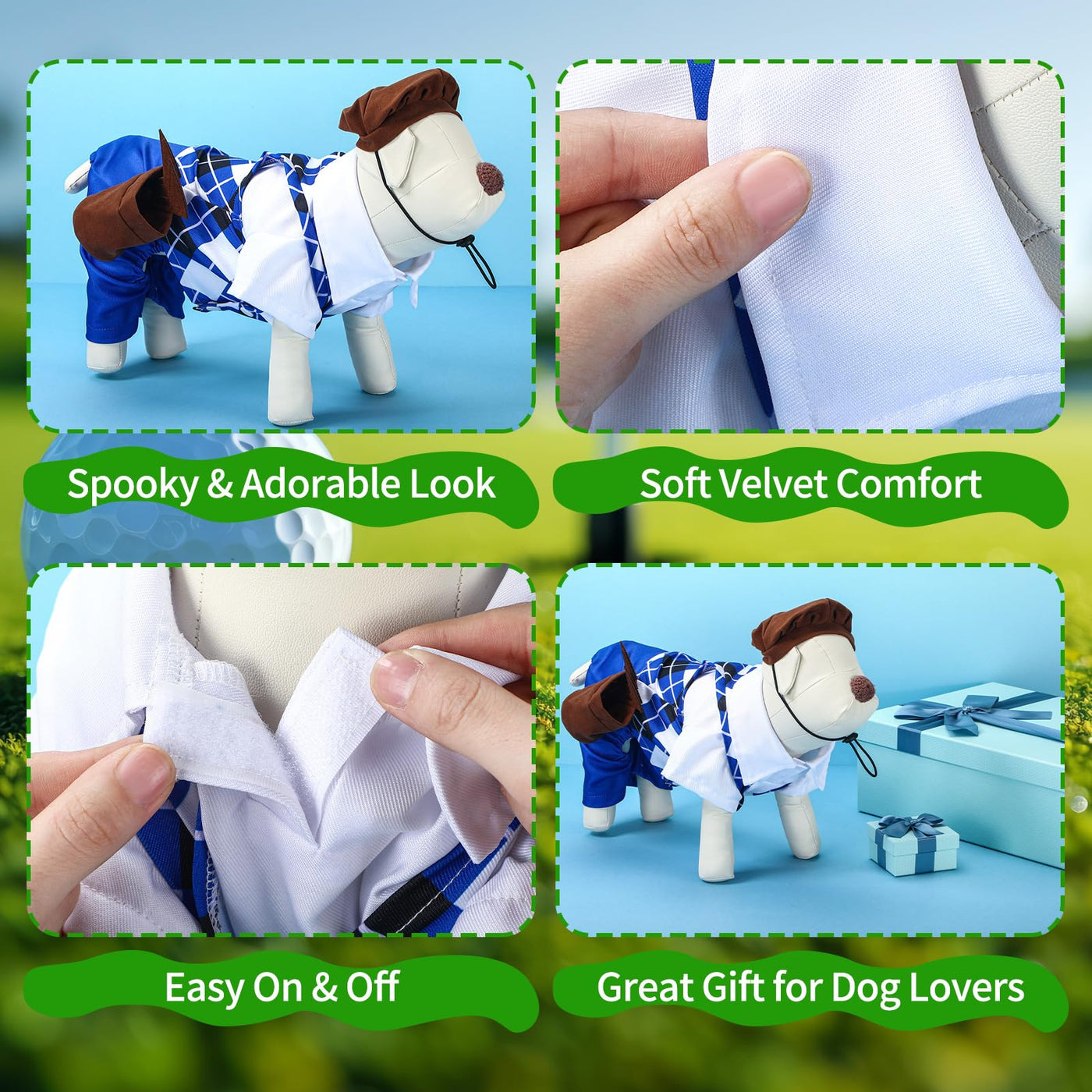 Features: The costume is made from sturdy materials designed to withstand multiple uses, ensuring that your pet can enjoy it on numerous occasions without it wearing out quickly. With its novelty design, this costume is sure to be a conversation starter at any event, making your dog the center of attention and providing endless entertainment for everyone involved Specifications: Material: quality fabric Color: multicolor Size: neck girth: 11.81 inches/ 30 cm, chest girth: 16.93 inches/ 43 cm Package includes: 1 Set of dog golf costume with golf bag and clubs Notes: Manual measurement, please allow slight errors on size. The color may exist a slight difference due to different screen displays. Small items are included, please keep them away from pets in case of choking risk. Before purchase, confirm whether the product size is suitable for your pet, and observe the pets reaction when using. Please remove the product in time if there is any discomfort.