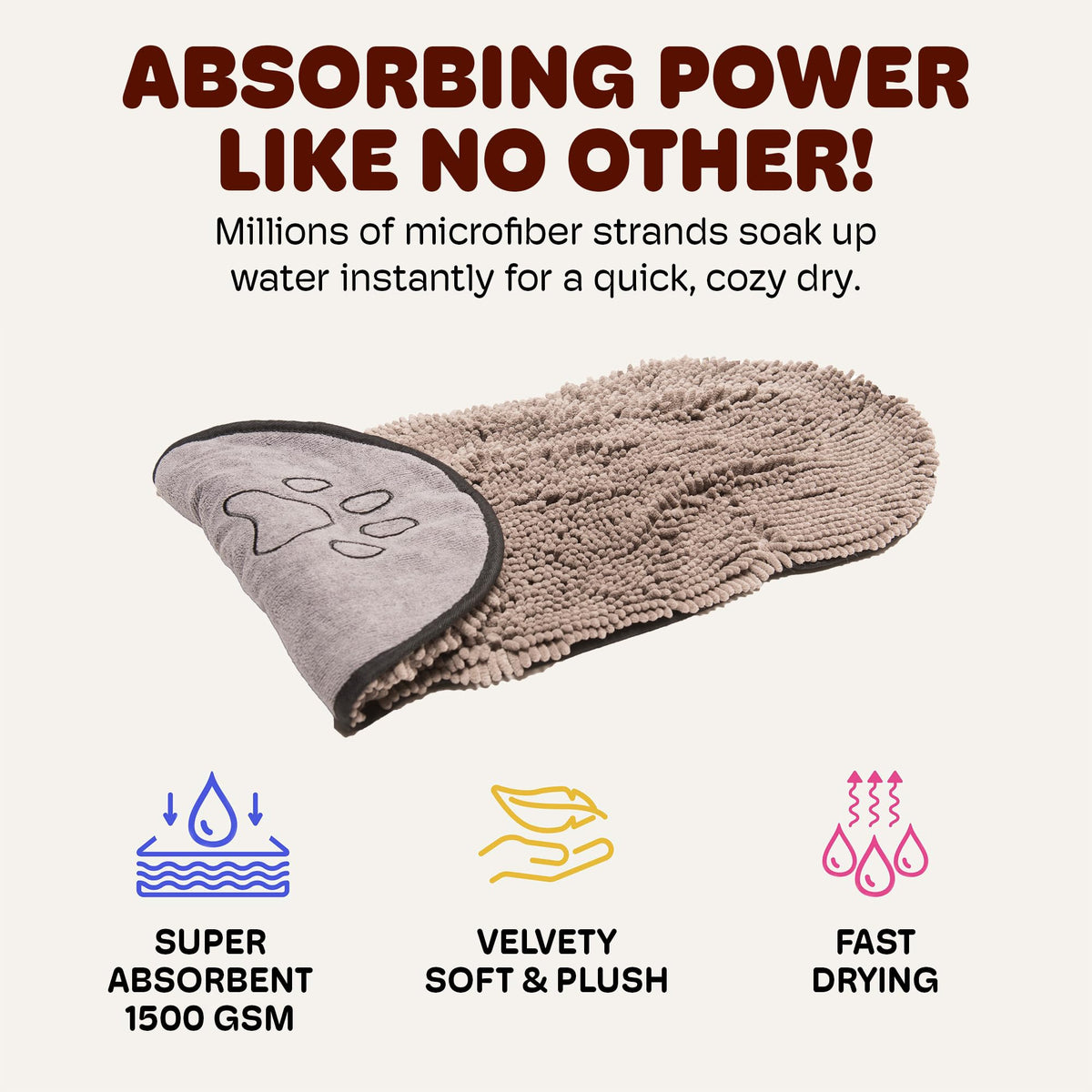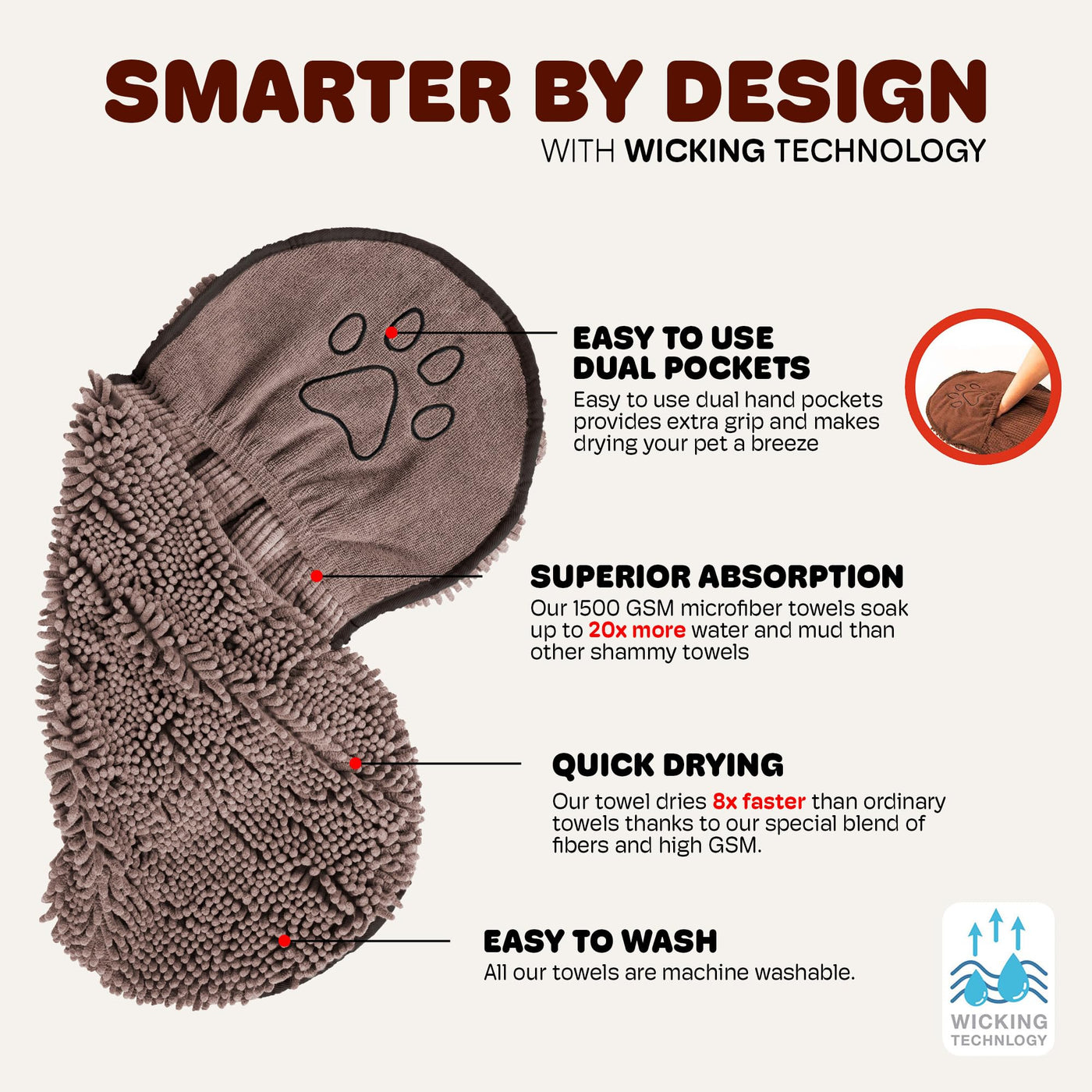 Dog Gone Smart The Dirty Dog Shammy - Fast Drying Plush Shammy Towel With Dual Hand Pockets And Elastic - Super Absorbent Microf