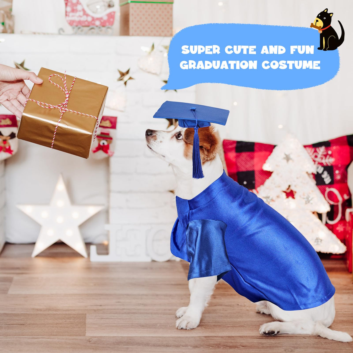 Dog Graduation Cap And Gown, Dogs Cats Graduation Holiday Halloween Costume Accessory(Blue,Large)