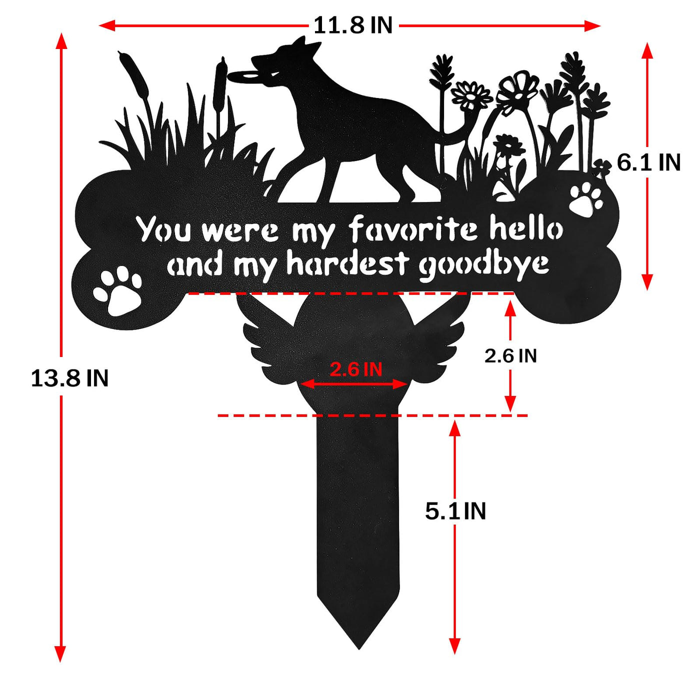 Honor Your Beloved Pets Legacy With This Timeless Laser-Cut Angel Wing Pet Grave Marker Sign, Designed To Blend Artistry, Durability, And Heartfelt Emotion. Pre-Engraved With The Poignant Phrase You Were My Favorite Hello And My Hardest Goodbye , This Pet Tombstones Dog Personalized Memorial Sign Allows You To Attach A Waterproof Photo (Printed Separately By The Owner), Creating A Unique Tribute That Captures Your Pets Spirit. Crafted With A Baked Enamel Finish To Resist Rust, Uv Damage, And Corrosion, It Is Ideal For Outdoor Pet Graveyards, Gardens, Or Pet Cemeteries, Ensuring Years Of Weatherproof Durability. The Heavy-Duty Metal Spike Base Enables Tool-Free Installation-Simply Push It Into The Soil For Instant Stability, Even In Harsh Winds Or Storms. Designed As Both A Sympathy Stake Sign Gift For Pet Loss And A Functional Garden Memorial Marker, It Offers Customized Photo Options And Compatibility With Standard 2'' 2'' Waterproof Photo Paper, Preserving Your Pets Smile Through Rain Or Snow. Measuring 12'' X 14'' (30Cm X 35.6Cm), This Stainless Steel Memorial Serves As A Versatile Tribute For Dogs, Cats, Or Other Pets, Whether Placed In Backyard Shrines, As A Dog Head Stone For Graves, Or Among Memorial Plaques For Dogs. With Laser-Cut Precision Edges And Industrial-Grade Materials, It Stands As A Final Gift As Enduring As Your Love-Where Garden Meets Forever.