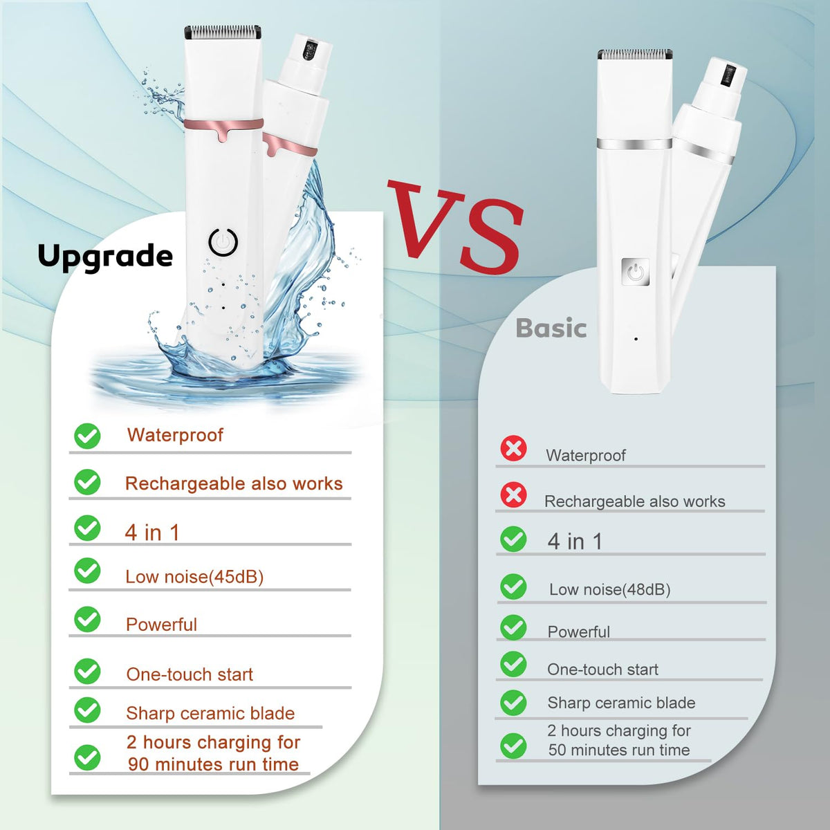 Dog Grooming Clippers, Upgrade Waterproof Cordless Low Noise 4-In-1 Cat Trimmer For Grooming, Rechargeable Usb Dog Paw Trimmer -