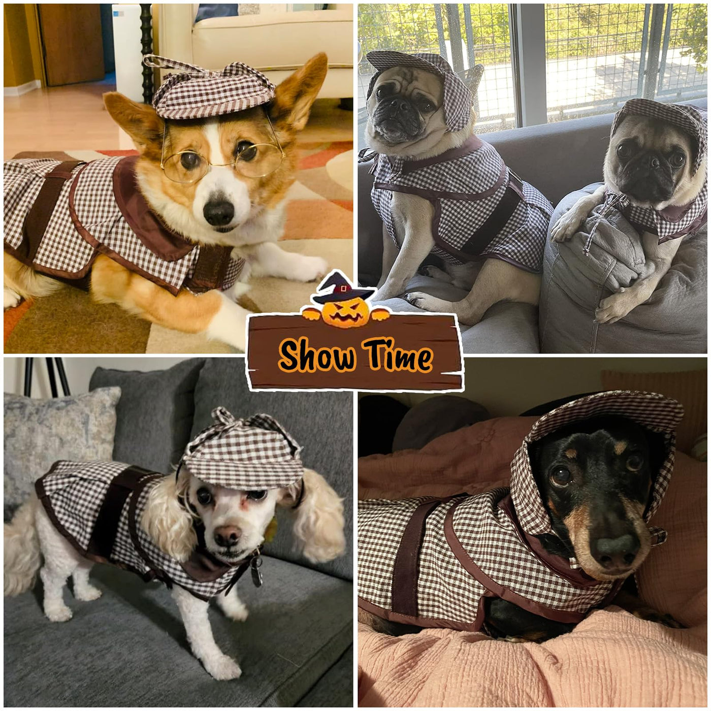 Dog Halloween Costume Famous Detective Dog Costume, Dog Detective Costume Halloween For Dogs Outfit Pet Costume, Funny Dog Cosplay Costume Small Dog Halloween Costume For Christmas Birthday Party