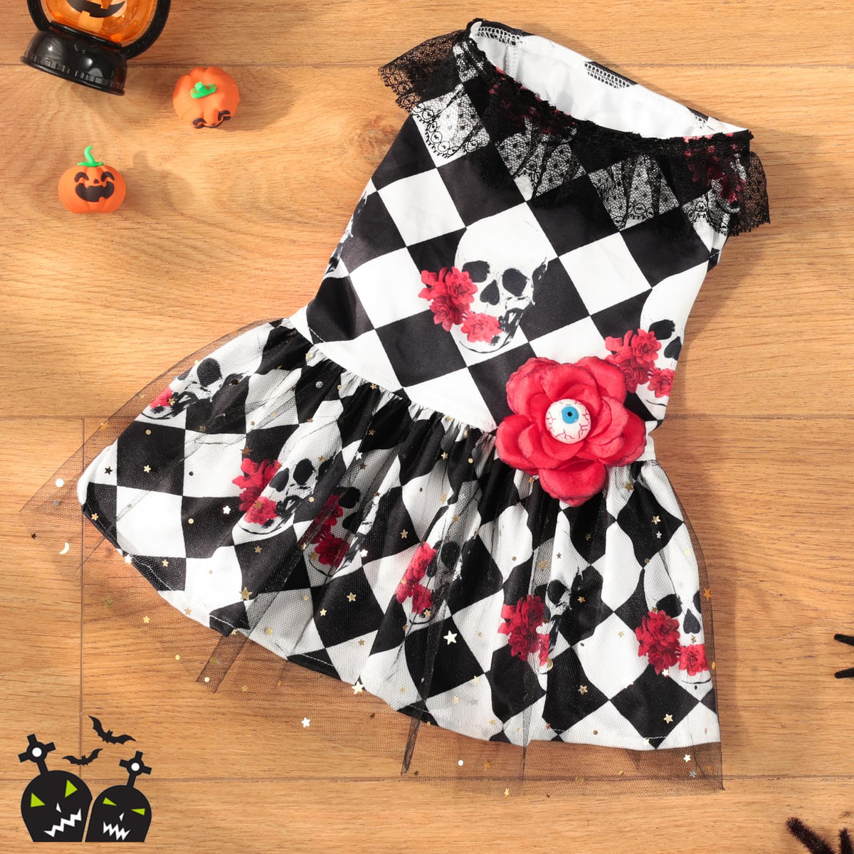 Dog Halloween Dress Skeleton Halloween Costumes For Dogs Funny Halloween Puppy Dress With Flower For Small Dogs Cats S