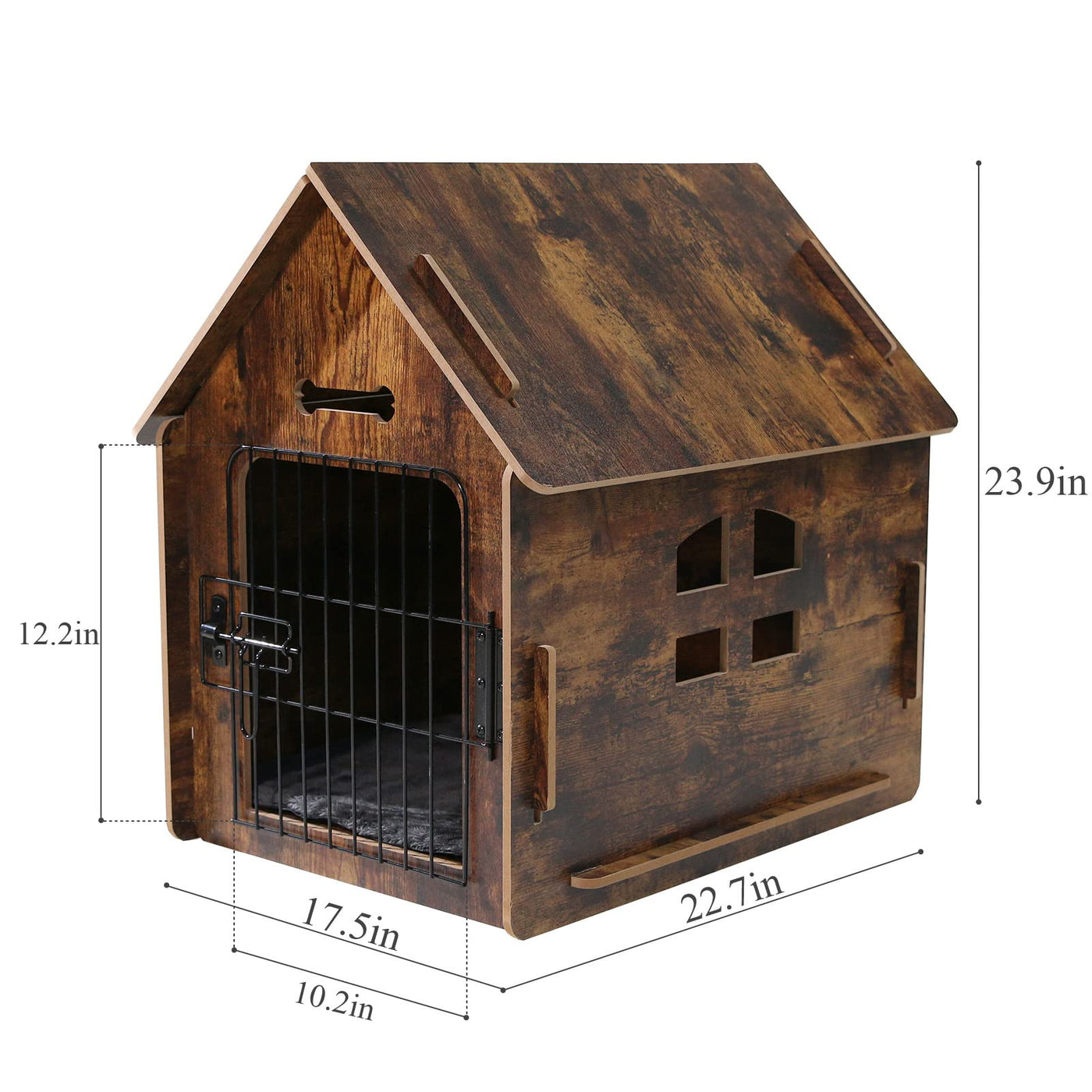 Exclusive condos for all Small Animals] - This wooden dog house (175 W x 227 D x 239 H) has a detachable sloped roof ideal for small pets such as puppies cats rabbits puppies or guinea pigs Designed in a modern style this practical wooden pet shelter will blend perfectly into your backyard garden or patio cute cartoon-Shape] - The cartoon-shaped hollow window and footprint decoration are cute your cats and dogs will like it very much and it also increases air circulation Indoor Wood Dog House] - Our pet houses is durable moisture-resistant and durable for indoor useNatural and eco-friendly materials such as wood are less toxic to your home and pets The use of natural materials has been shown to be more beneficial to the health and well-being of pets Excellent indoor Dog Kneel]: Best gifts for your child this spring a cozy warm place to stay and a great playground The cabin offers plenty of room to move and relax while being efficient enough to keep your home indoors in cold weather Easy to Disassemble and clean] - Our dog houses for indoor dogs are easy to install have no screws are simply interlocked and can be removed whenever needed It took less than 5 minutes to set up