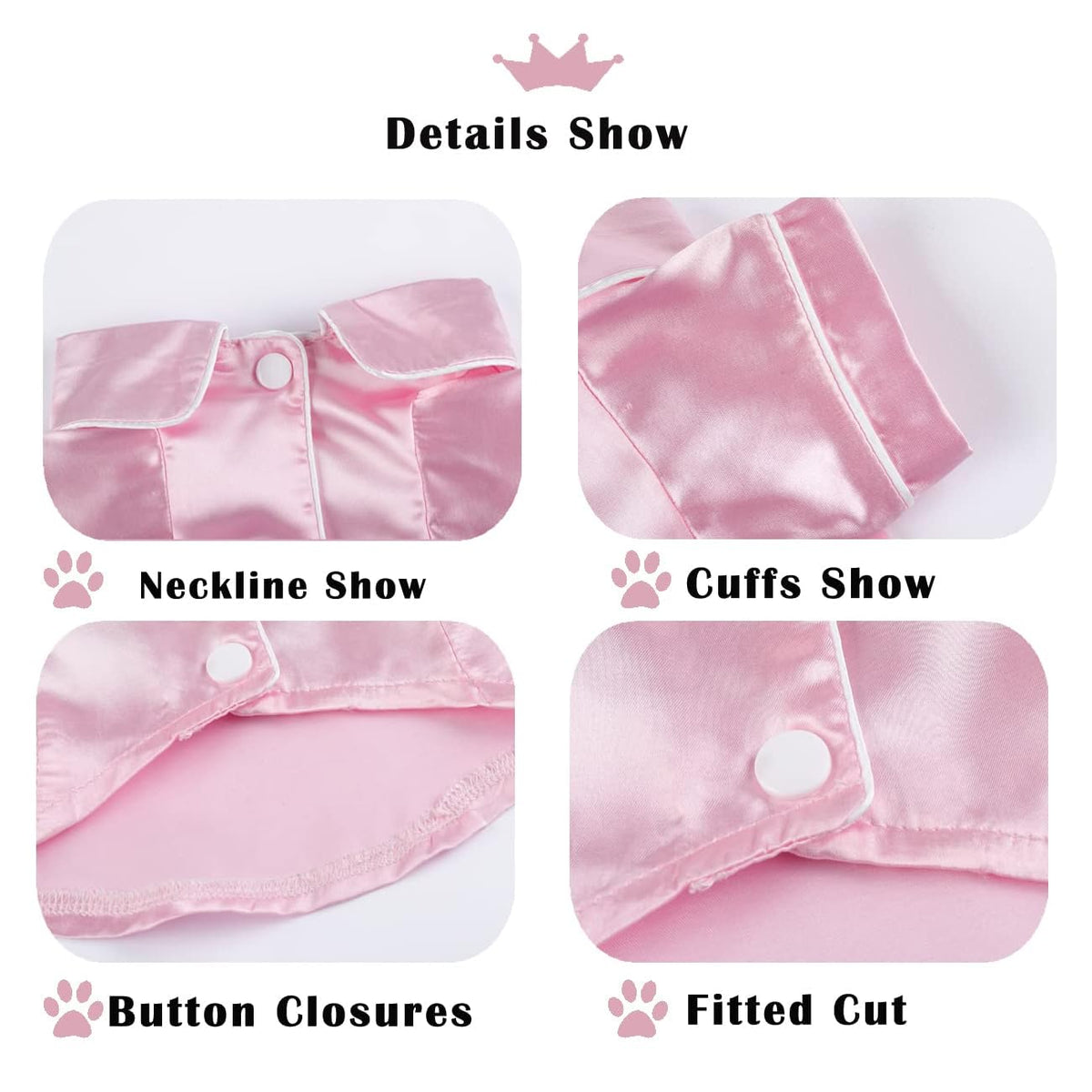 Dog Lapel Silk Sleepwear Soft Two-Legged Shirt Outfit For Small Girl Dogs Christmas Holiday Birthday Party (Pink, L)