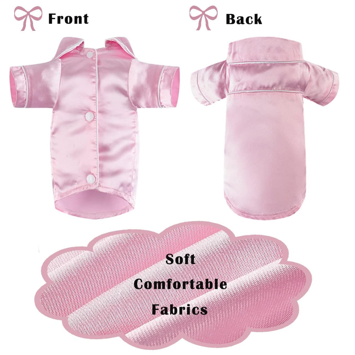 Dog Lapel Silk Sleepwear Soft Two-Legged Shirt Outfit For Small Girl Dogs Christmas Holiday Birthday Party (Pink, S)