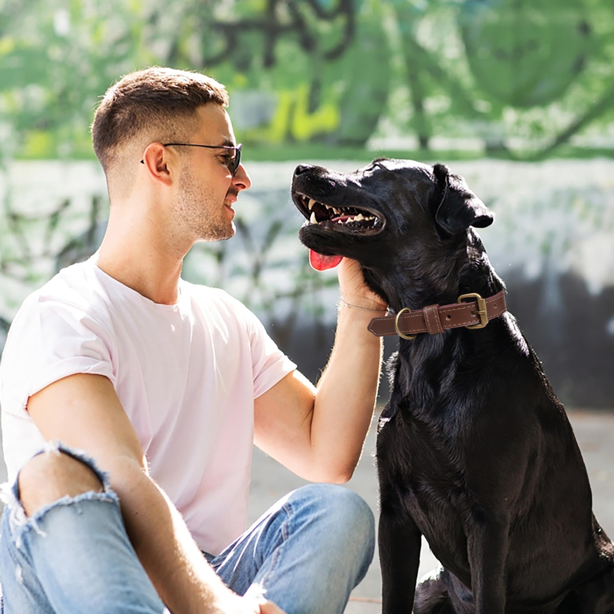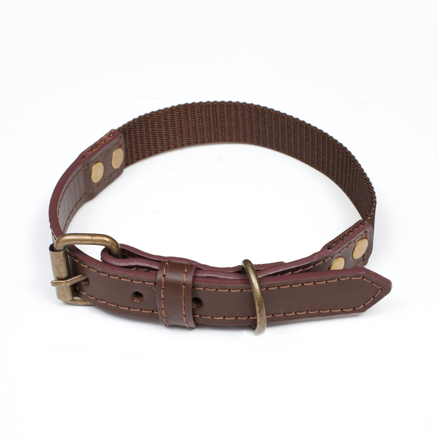 Heavy Duty Dog Leash And Collar Set With Metal Buckle - Durable Pet Walking Gear, Strong Leather And Nylon Dog Leash With Adjustable Collar Set - 24 Inch Collar, 50 Inch Leash, Coffee Brown