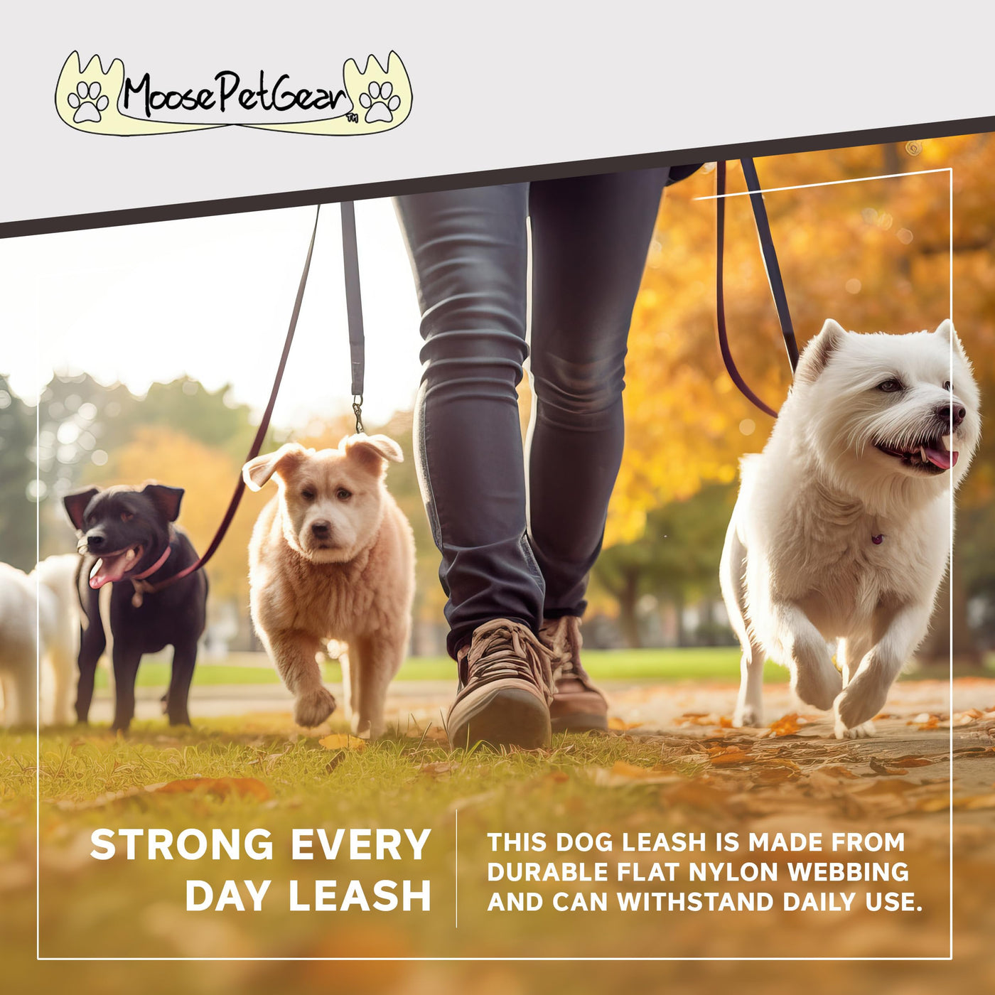 Moose Pet Wear Dog Leash, 1 Inch x 4 FeetIf you are in the market for a basic dog leash that you can turn to day after day, then look no further. This standard dog leash measures 1 inches wide and 4 feet long. It is made from soft, durable flat nylon webbing.With 17 vibrant colors to choose from, there is are style to please everyone. You can mix and match the dog leash with one of Moose Pet Wear’s premium collars to complete the look.Designed to Last a LifetimeThese dog leashes are designed to last. They feature a nickel-plated bolt snap that is perfect for quick hook up and release. The comfortable hand loop allows for a strong hold yet won’t rub if your pet tugs or pulls.Take it AnywhereTraveling with your pet? This pet leash can be easily packed away and taken on any trip. Since it is ultra-strong and durable, use this dog leash when hiking, at the dog park or any other outdoor activity you want to enjoy with your pet.The Moose Pet Wear Dog Leash is proudly made in the USA!