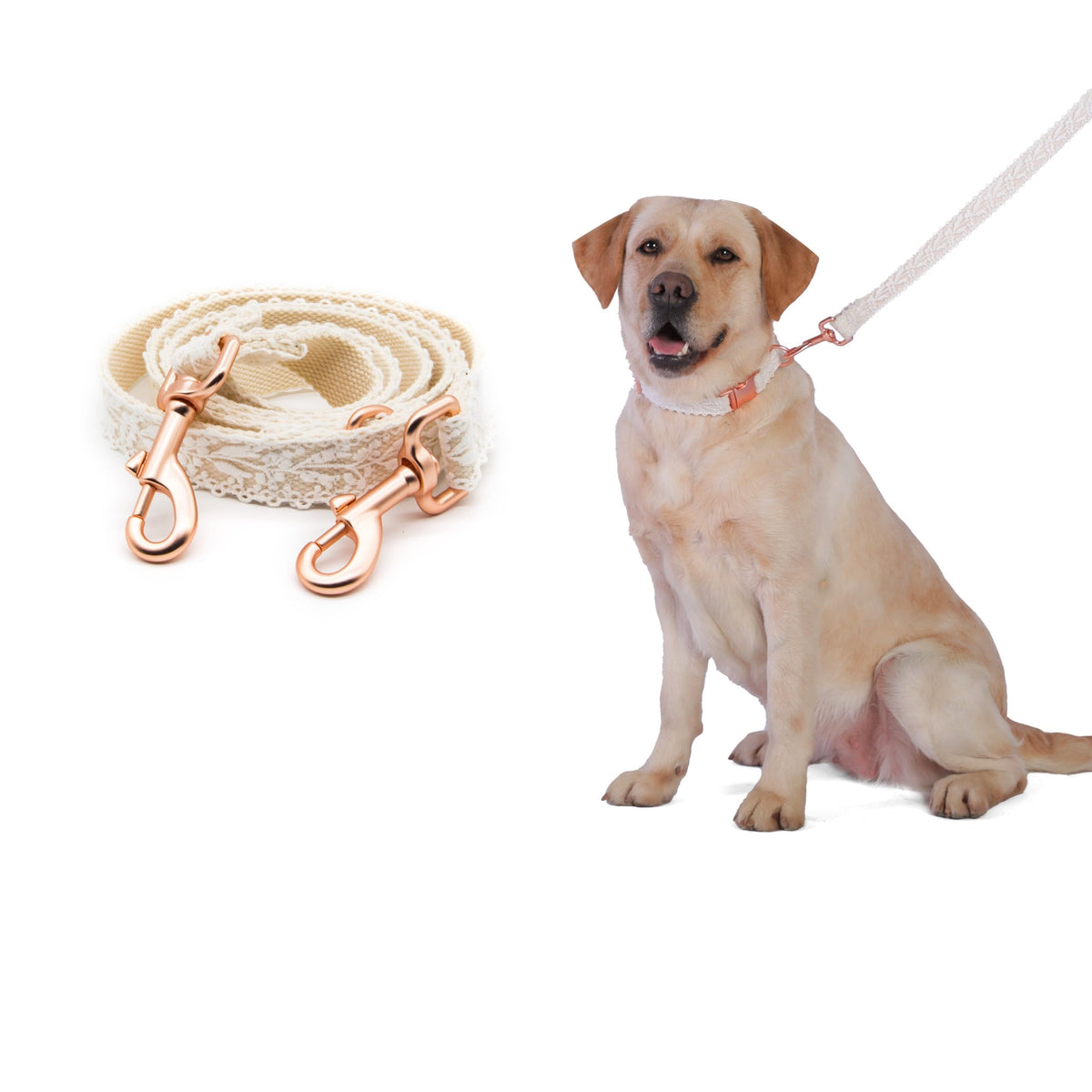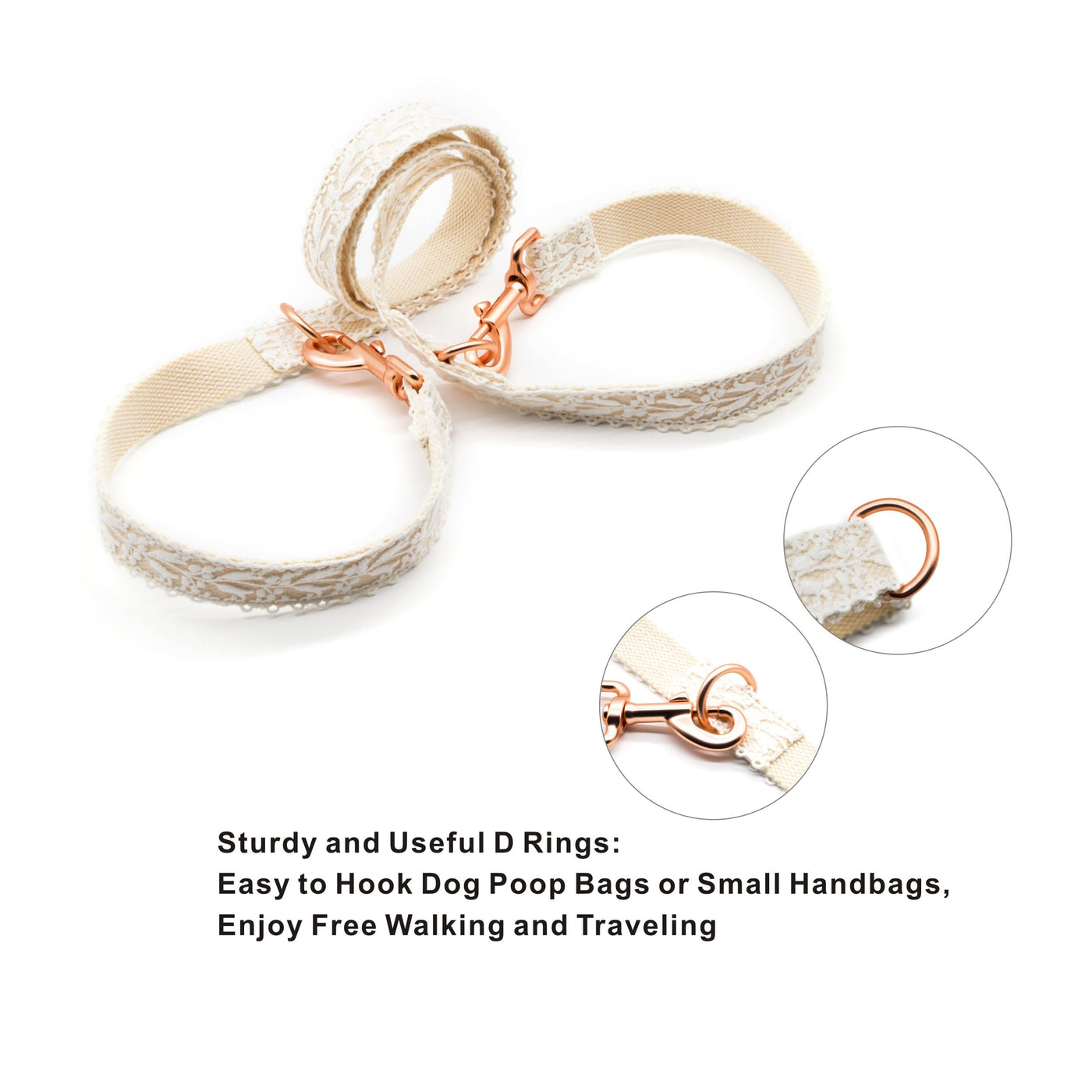 Dog Leash Cotton Lace Handmade 4-5 Ft Adjustable Comfortable Unique Leashes For Small Medium Large Dogs Beige Double