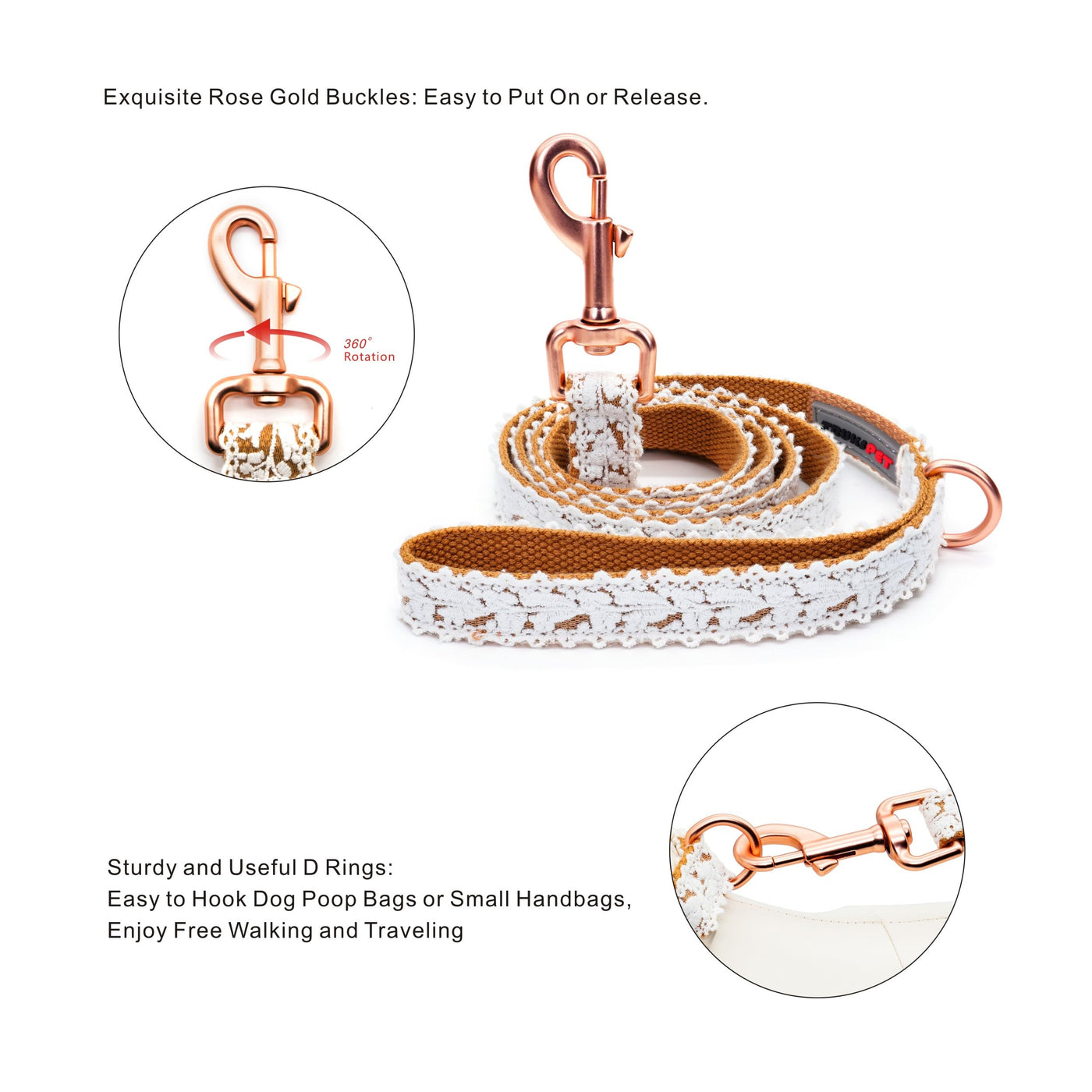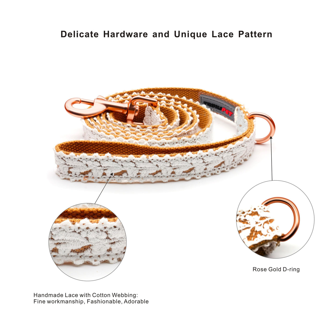 Dog Leash Cotton Lace Handmade 4-5 Ft Adjustable Comfortable Unique Leashes For Small Medium Large Dogs Brown Single