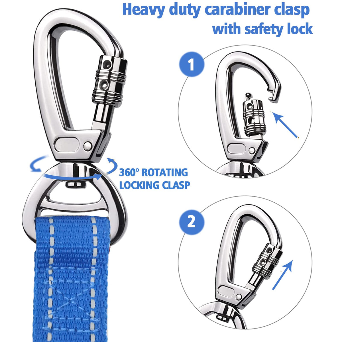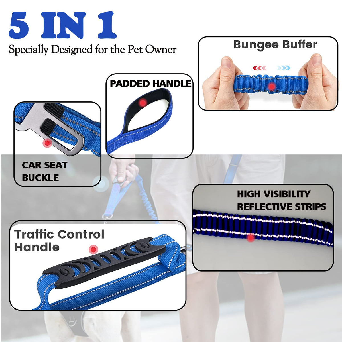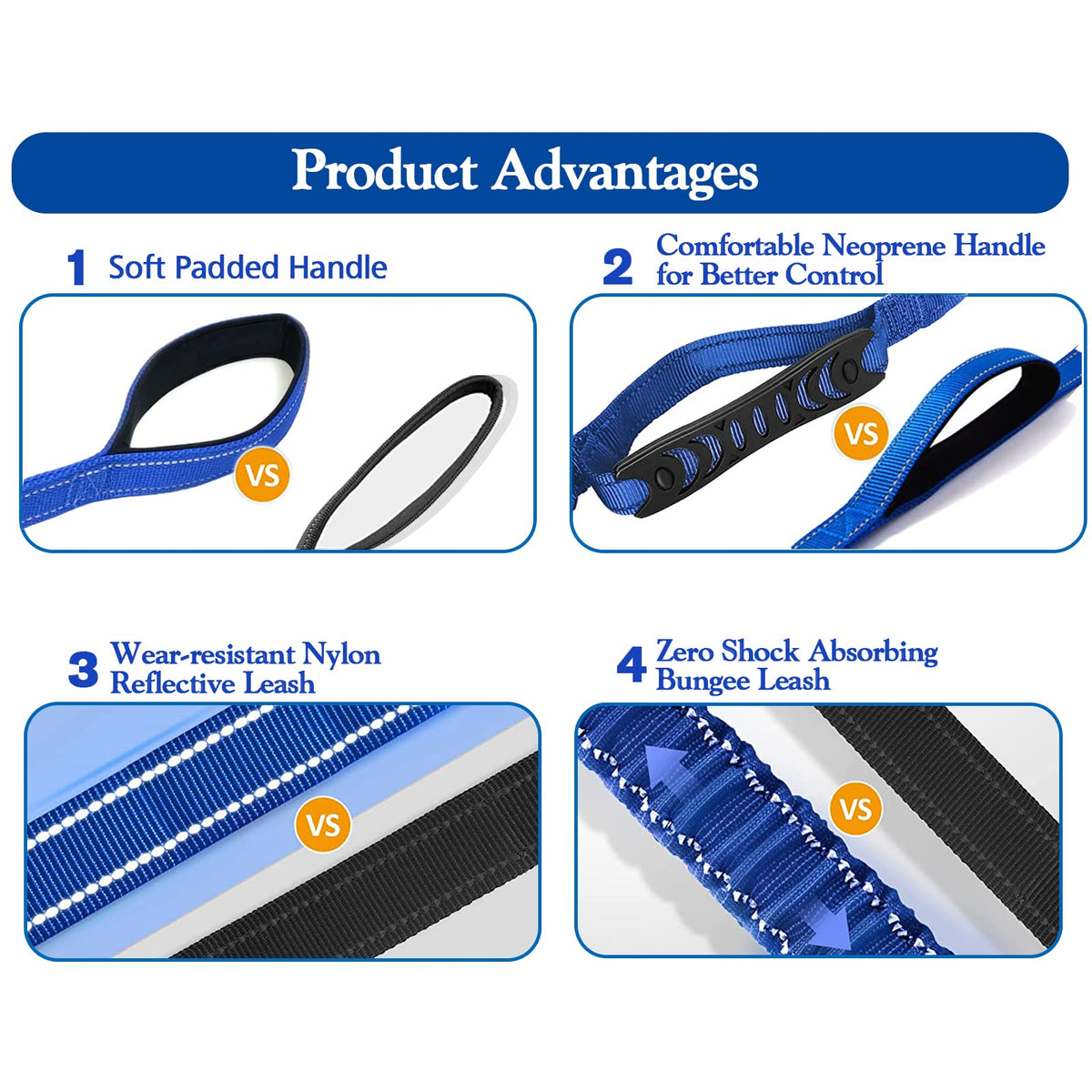 Are You Concerned About Your Dogs Safety When Youre Out? Are You Looking For A Perfect Dog Leash For Walking, Training? Our Leash Is Specially Designed For The Pet Owner : Unlike Other General Dog Leash, ?1.Our Dog Leash Can Also Be Used As A Car Seat Belt,Keep Your Pet Safely Restrained And Secure In Vehicle While Driving ?2.This Innovative Leash Uses Zero Shock Technology To Reduce The Impact And Strain From Overzealous Dogs That Tend To Pull. This Advanced Shock-Absorbing Component In The Center Of The Leash Cushions And Eases The Pressure For Both The Owner And The Dog ?Perfect Control With Dual Handles? Vthe Lower Traffic Handle Is Positioned About A Foot Away From Its 2-Inch Heavy Duty Carabiner, &Nbsp;Specifically Designed To Allow A Better And Quick Control Of Your Dog When Passing The Roads, Walking Through The Crowds, Or Doing The Training. For The Casual Walking Or Jogging, The Upper Handle Will Do The Trick. Vuse Top Comfy Padded Handle Is Positioned Right At The End Of The 4 Foot Dog Leash Rope,The Length Of Which Is Ideal For Giving Your Pooch The Freedom To Roam And Explore Its Surroundings, But With You Retaining Full Control ?Better Safety At Nighttime? Reflective Stitching On Both Sides To Provide Great Visibility. Walk With Your Dog With More Confidence During Every Evening &Amp; Early Morning. ?Extra Thickness And Sturdiness Nylon Leash ? A Very Popular Material, Nylon Provides Durability At A Cost That Is Friendlier Than Leather. With An Extended Life Against Wear And Tear, Weather-Proof ?Longtime-Warranty Even If Chewed By Your Dog? We Want To Make Sure That This Is The Best Anti-Shock Leash That You Have Ever Purchased And We Stand Behind All Of Our Products. Our Warranty Covers Any Defects In Materials Or Manufacturing And Even Covers Accidental Chewing By Your Dog.