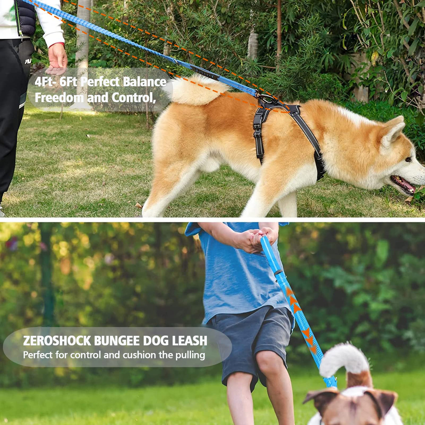 Dog Leash For Large Dog Heavy Duty, 4-6Ft Traffic Padded 2 Handles For Extra Control, Strong Shock Absorbing Bungee Dog Leash Wi