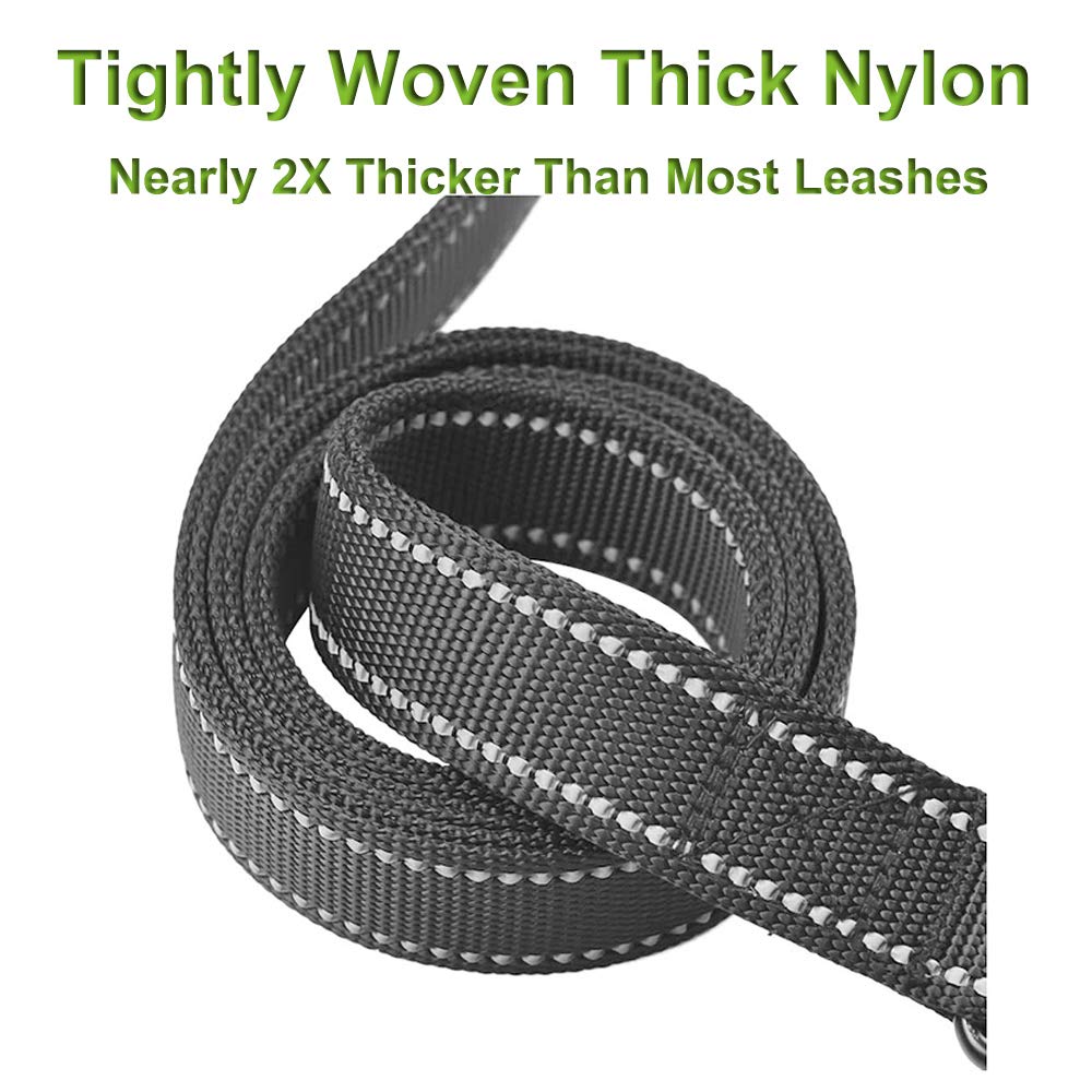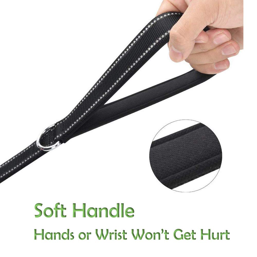 Dog Leash For Large Dogs, Traffic Padded 2 Handles For Extra Control, 6 Ft Long With Reflective Stitch For Night Walking Black