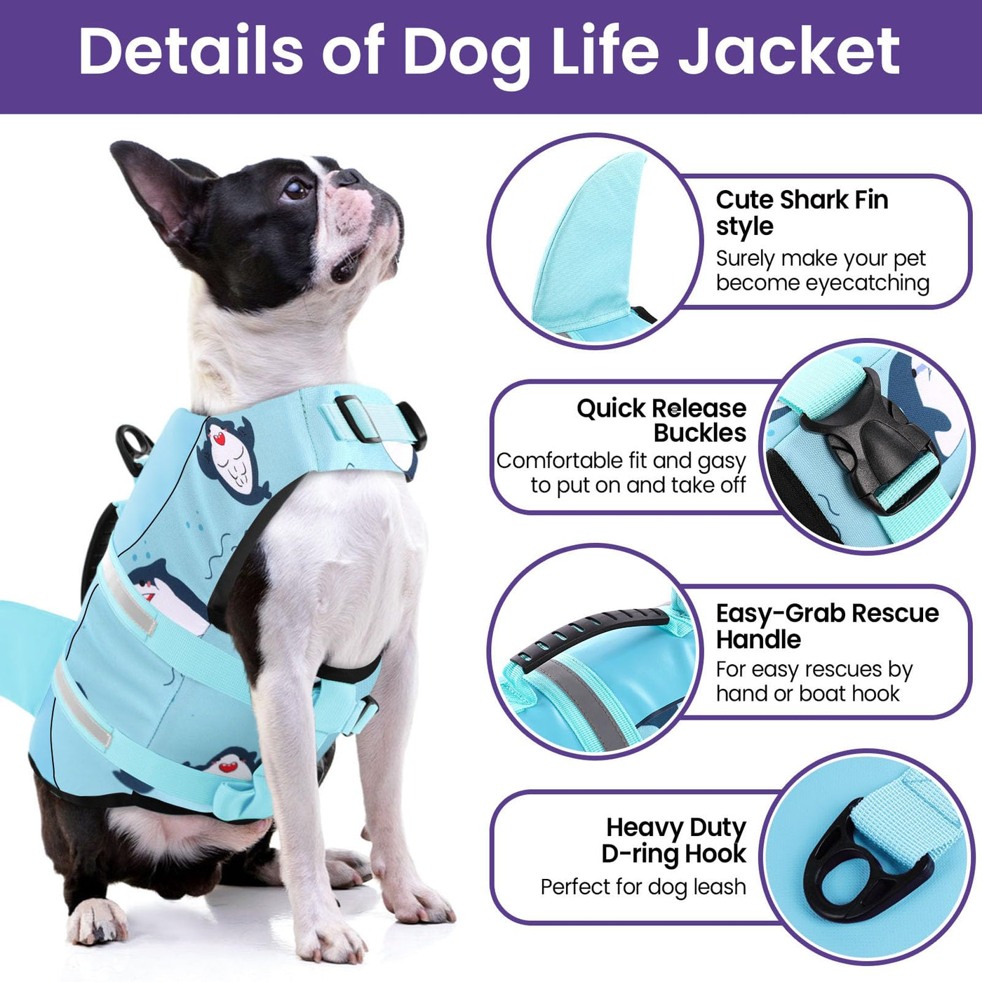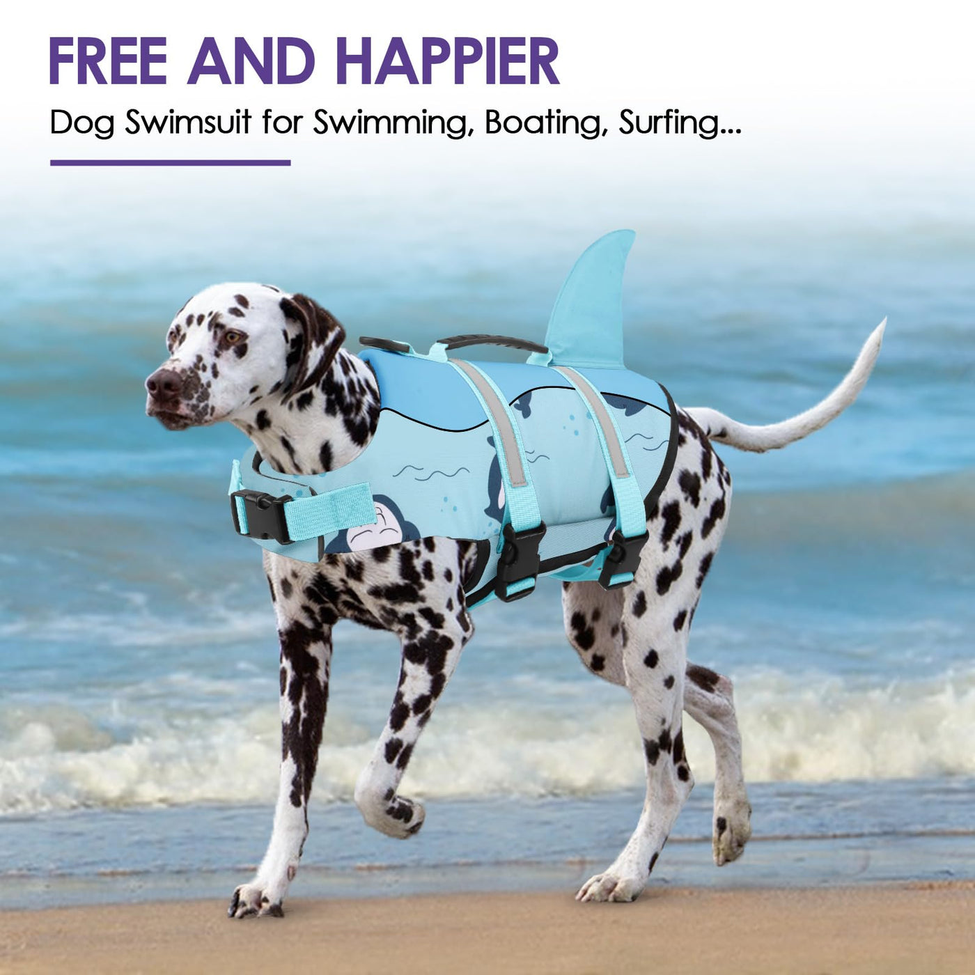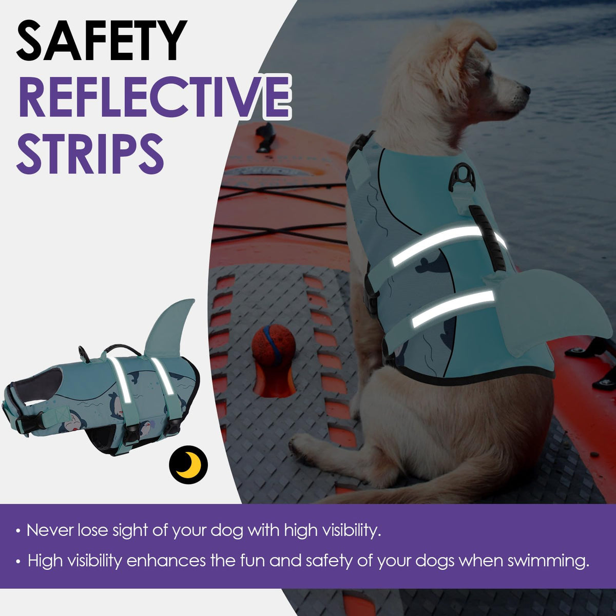 Dog Life Jacket, Large Dog Life Vest for Swimming Boating, Shark Life Jackets for Small Medium Large Dogs, Reflective Dog Lifesa