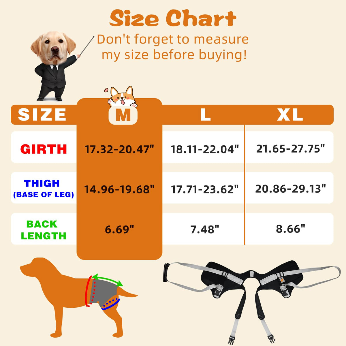 Dog Lift Harness For Medium Dogs,Dog Sling For Back Legs,With Handle,Rear Leg Support/Walk/Up Stairs/Dogs Joint Injuries/Arthrit