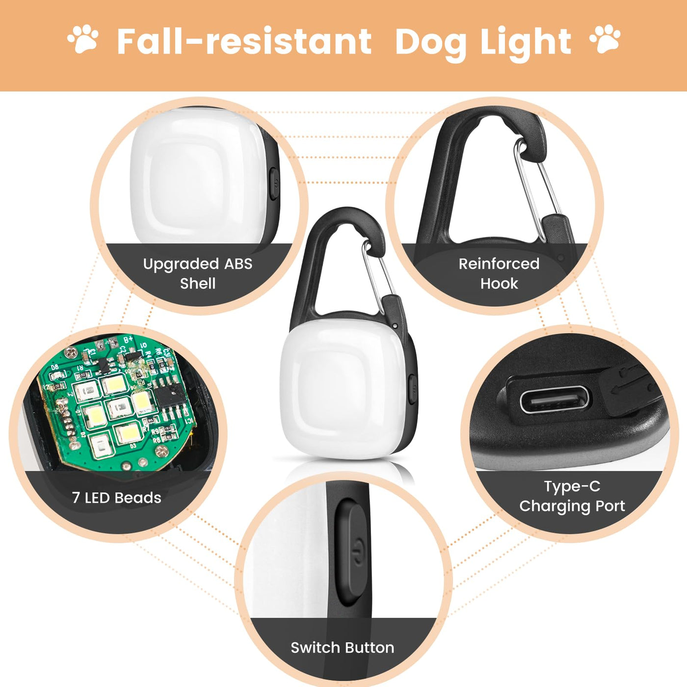 Dog Lights for Night Walking, 2 Pack 4 Modes Dog Collar Light, IP68 Waterproof Type-C Rechargeable Pet Safety LED for Running, C