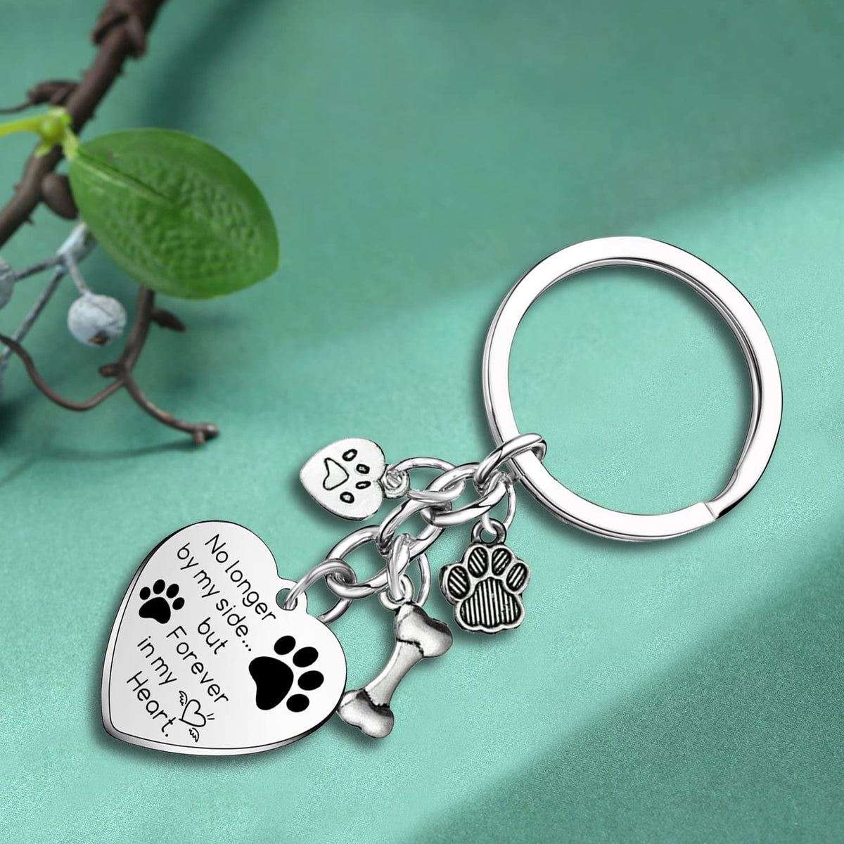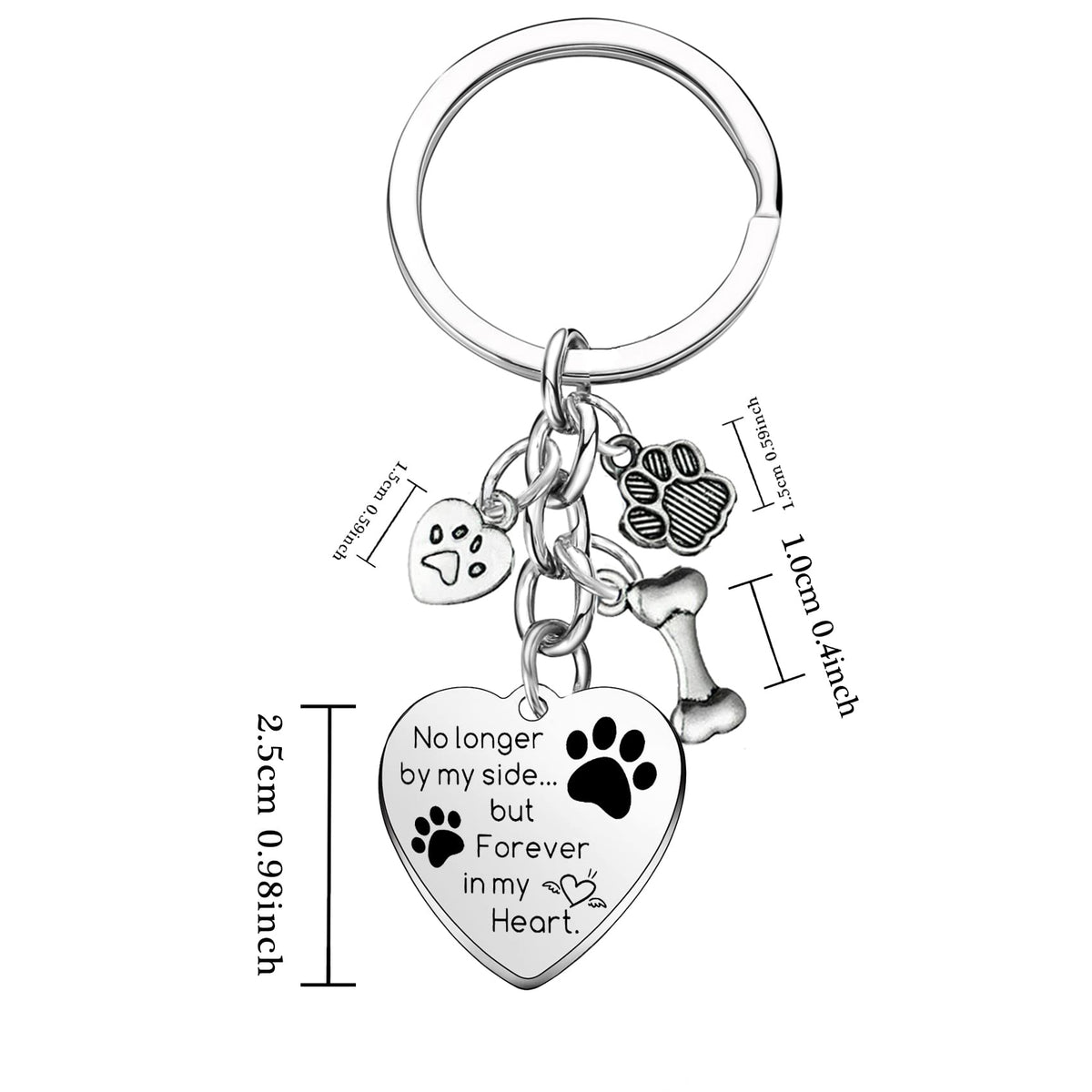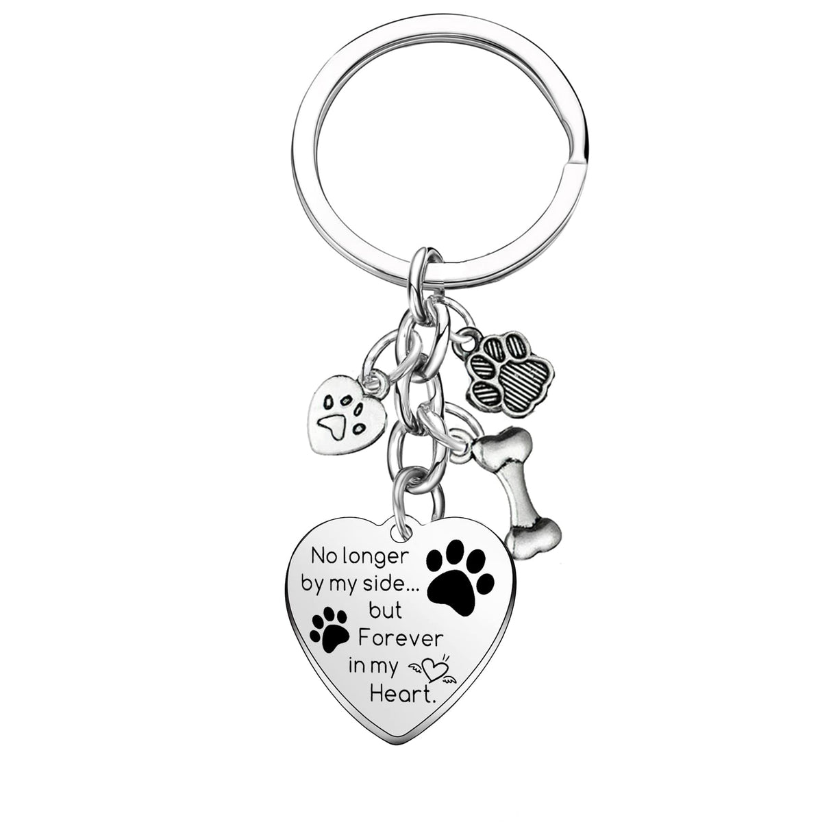 Dog Memorial Gifts Pet Memorial Keychain No Longer by My Side Forever in My Heart Key Chain Loss of Dog Gifts Paw Prints Charm S