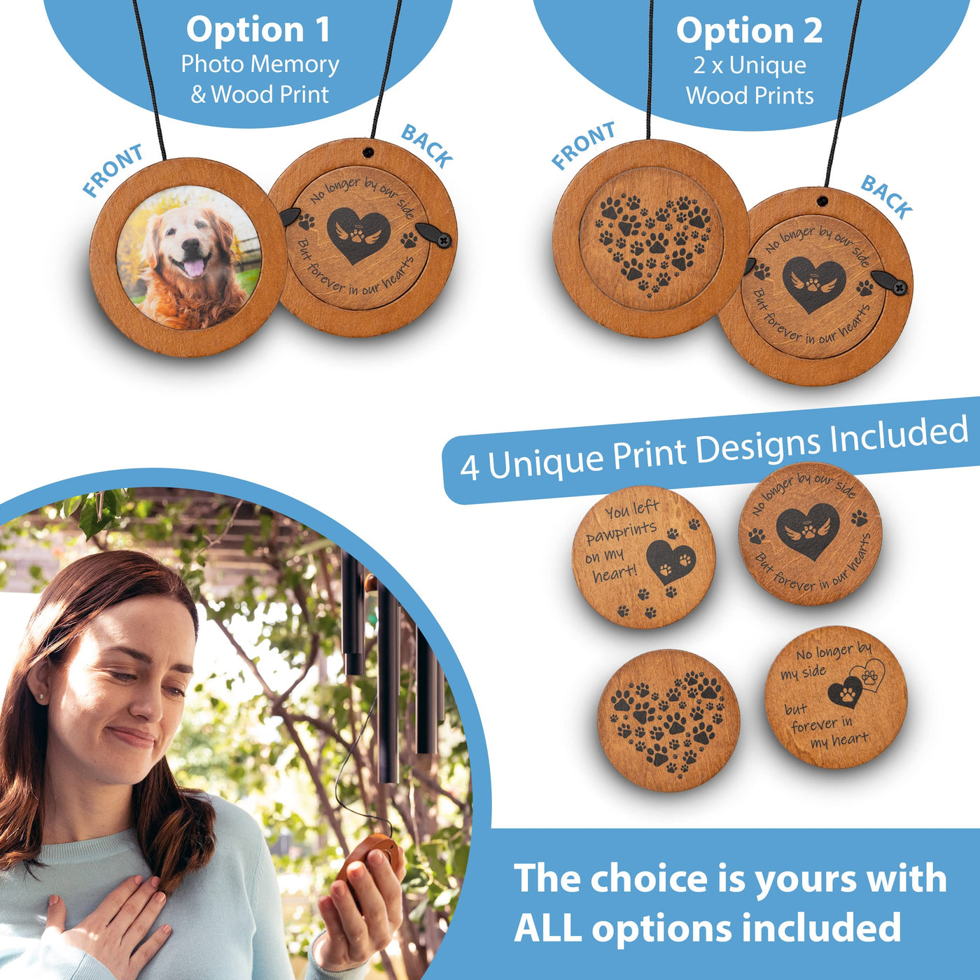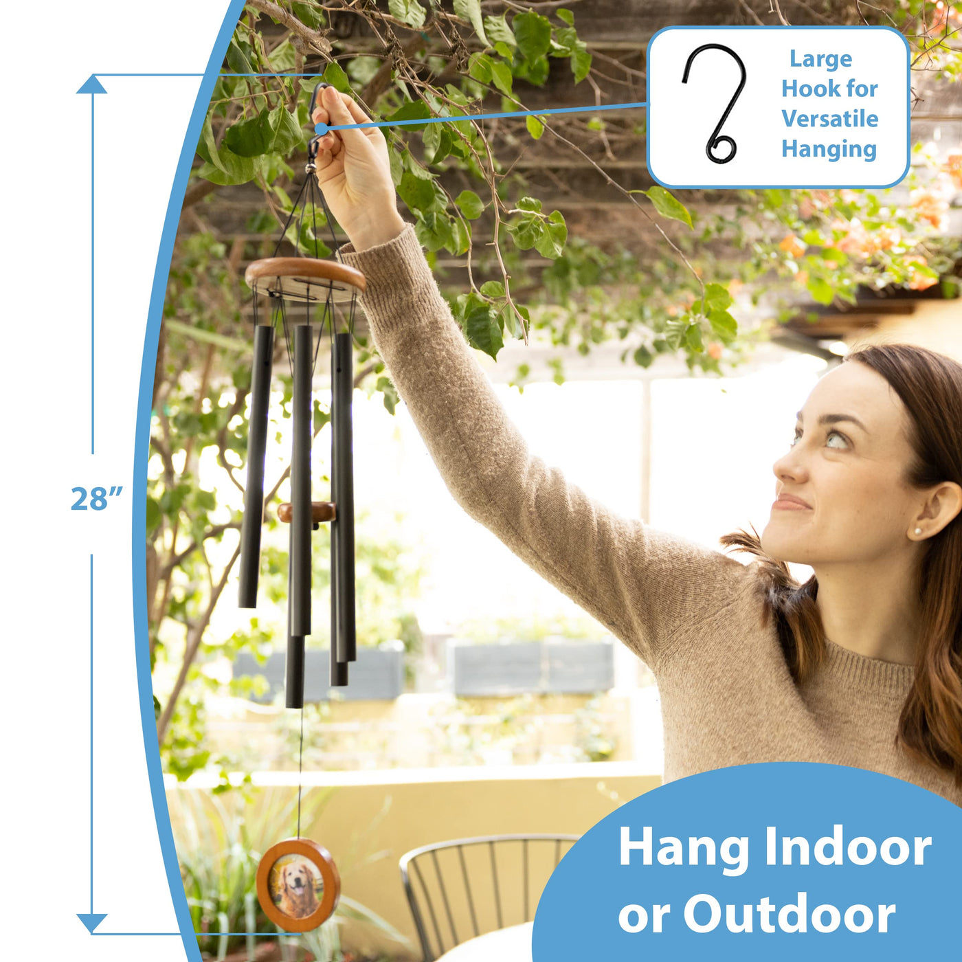 Dog Memorial Wind Chime 28' With 5 Pendant Designs And Comforting Pet Loss Ebook- Dog Memorial Gifts-Loss Of Dog Sympathy Gift-Dog Wind Chimes For Pet Memorial Gifts, Photo Dog Remembrance Gift