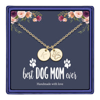 Dog Mom Gifts Gold Initial Necklace 14k gold filled letter initial dog mom gifts necklace, letter disc pendant from A-Z, dainty and delicate, suitable for women and girls. Choose letters to signify your pet name, favorite initials, special phrase, or anything else meaningful. Dainty gold initial dog mom gifts necklace is packed in a box with a inspirational card. It's the perfect gift for a dog memory gifts, dog memorial gifts, dog lovers gifts, dog gifts, pet lovers gifts, Birthday, Mother's Day, Christmas, or Valentine's Day for the Dog Mom in your life. best dog lovers gifts for daughter, wife mom and your best friend. 14k gold filled dog mom paw print necklace. Perfect for everyday wear! We've combined two tiny initial letter disc with a simple gold chain to create a beautiful dog mom gifts. Pet lovers necklace has 16'+2' extension chain and is designed at the optimal size to fit over your neck. initial letter necklace length works on practically anyone!