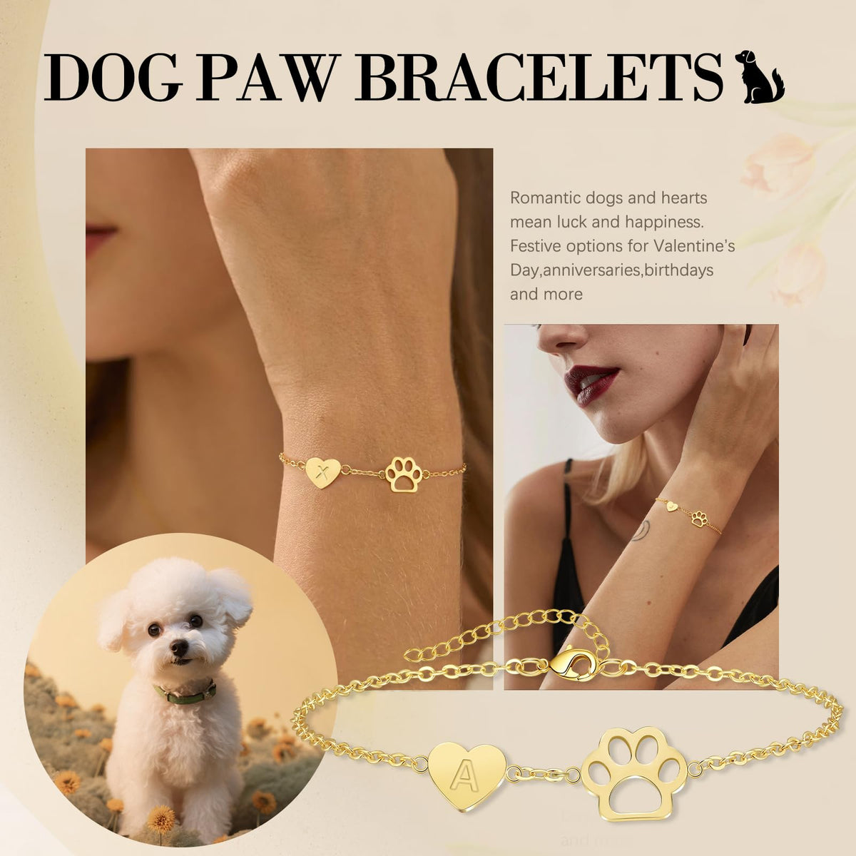 Dog Mom Gifts M Initial Bracelets For Women With Dog Paw Memorial Gift For Dogs Lover Christmas For Adults Women Pet Paw Heart D