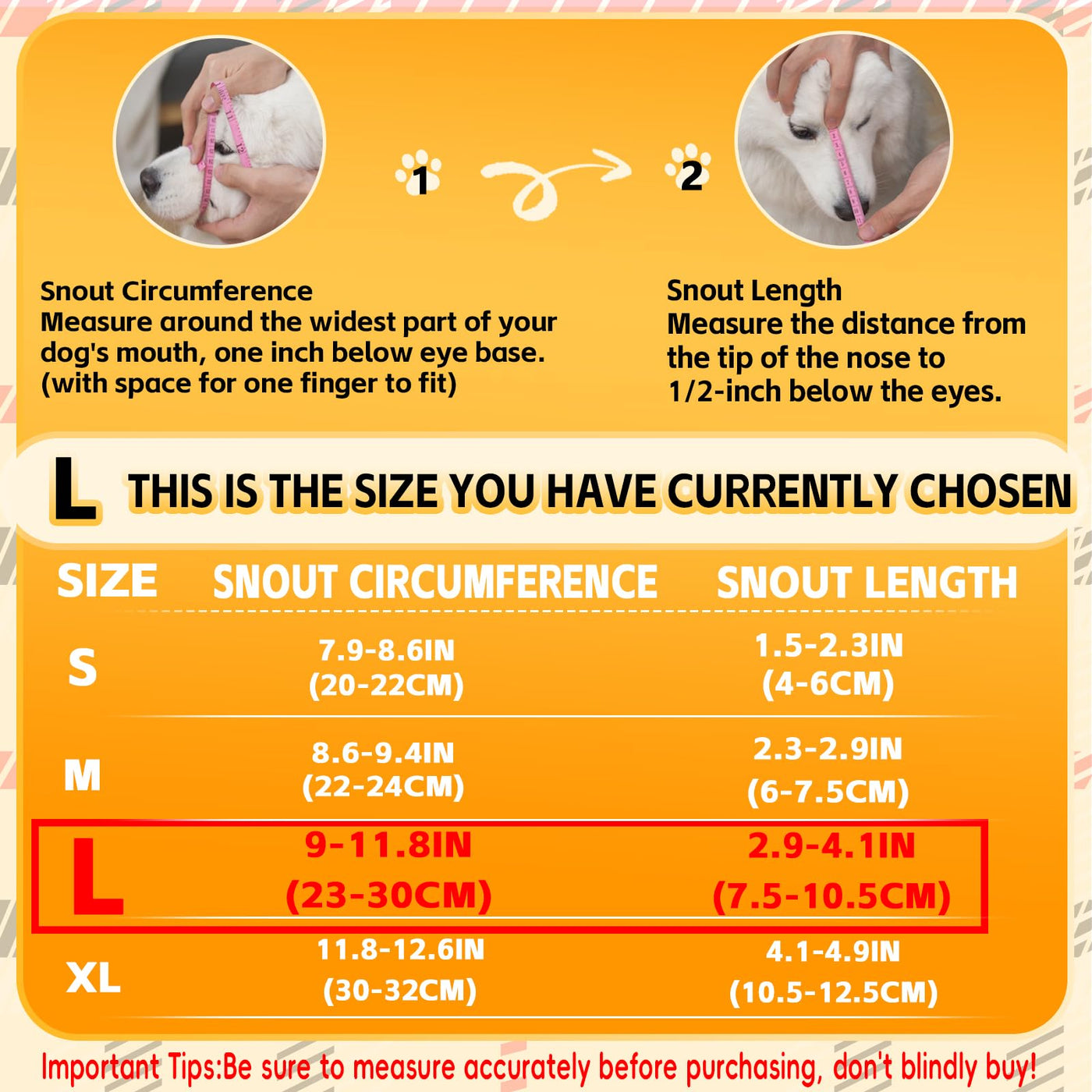 Please must WATCH the following VIDEO carefully before BUYING, as it will provide a BETTER user experience for your product! Some important tips to know before purchasing: Most dogs will QUICKLY REMOVE them or easily TAKES IT OFF when they FIRST wear them! This is not a problem with the muzzle itself, it requires you to patiently GUIDE the dog according to the instructions and use long-term methods to help him adapt to the muzzle! Although our muzzle uses the highest quality, softest, and most comfortable materials on the market, some dogs still feel RESISTANCE before use, which is a very NORMAL phenomenon! This option is suitable for LARGE-SIZED dogs whose snout circumference is between 9 ' '-11.8 'in, be sure to measure accurately before purchasing, don 't blindly buy! If you want to purchase OTHER BIGGER sizes, please SWITCH between the size options at the TOP of our page After purchasing, please be sure to READ the complete INSTRUCTION manual placed in the packaging box, then watch our video on how to use the muzzle correctly, which will be very helpful for you to use the muzzle! (The dog will quickly TAKE IT OFF or REMOVE!)