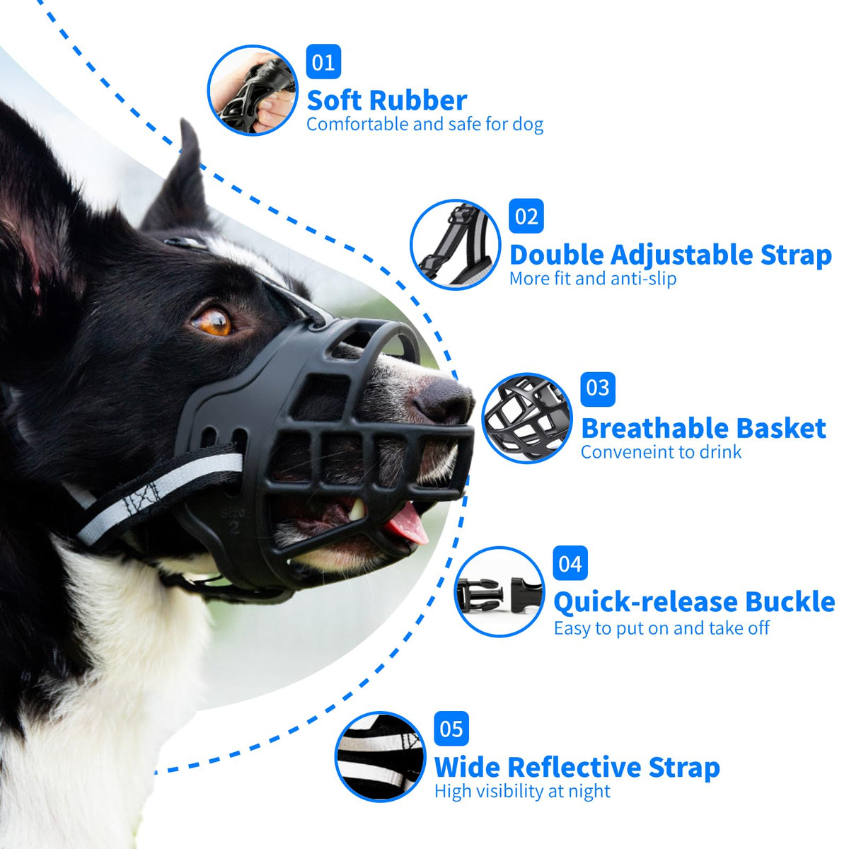 Dog Muzzle, Soft Basket Muzzle For Dogs, Dog Mouth Guard For Small Medium Large Dogs, Stop Biting, Chewing And Barking, Breathab