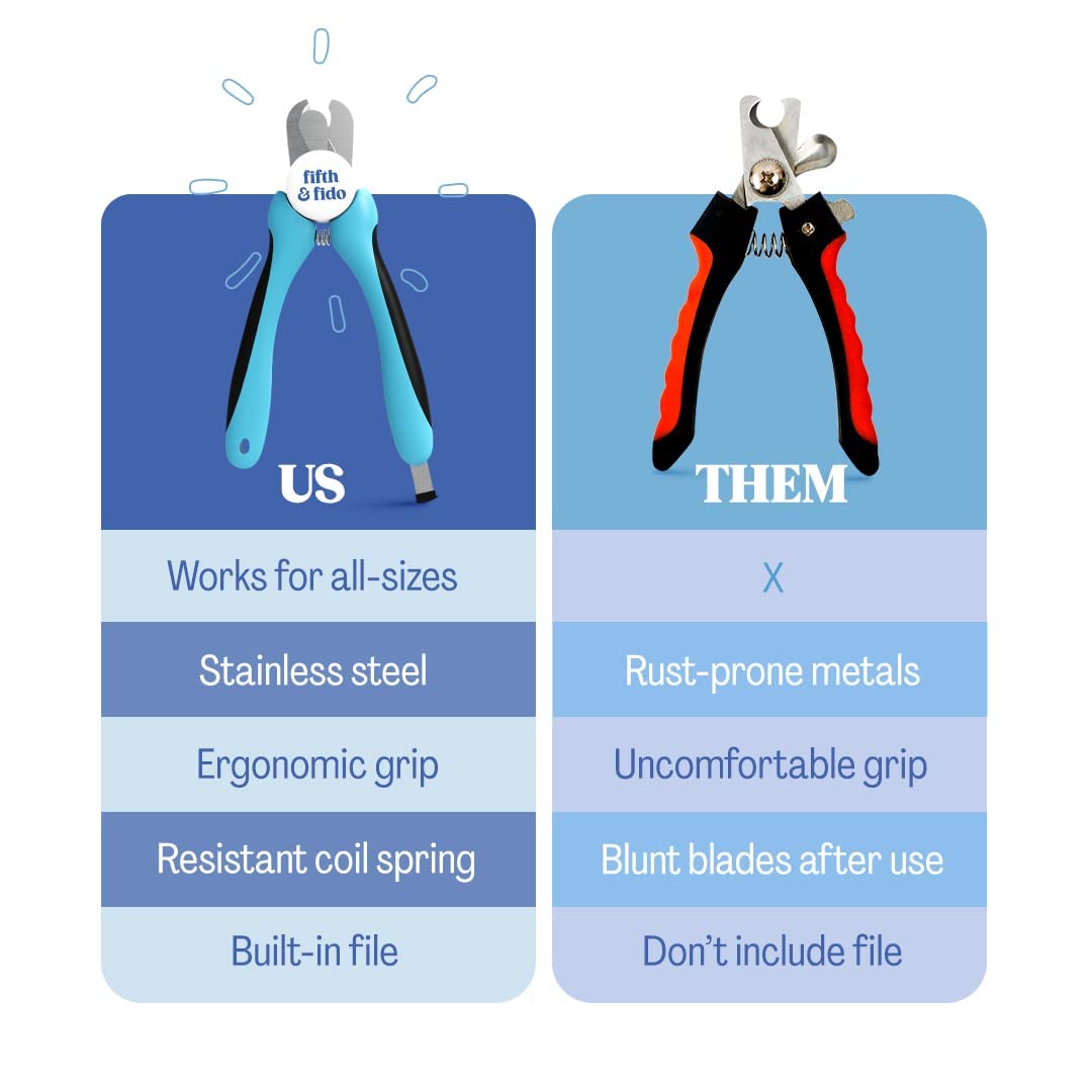 Q: What materials are the dog nail clippers made from?A: The clippers are made from durable stainless steel, ensuring longevity and a clean cut every time. The ergonomic design also provides a comfortable grip for easy handling during grooming.