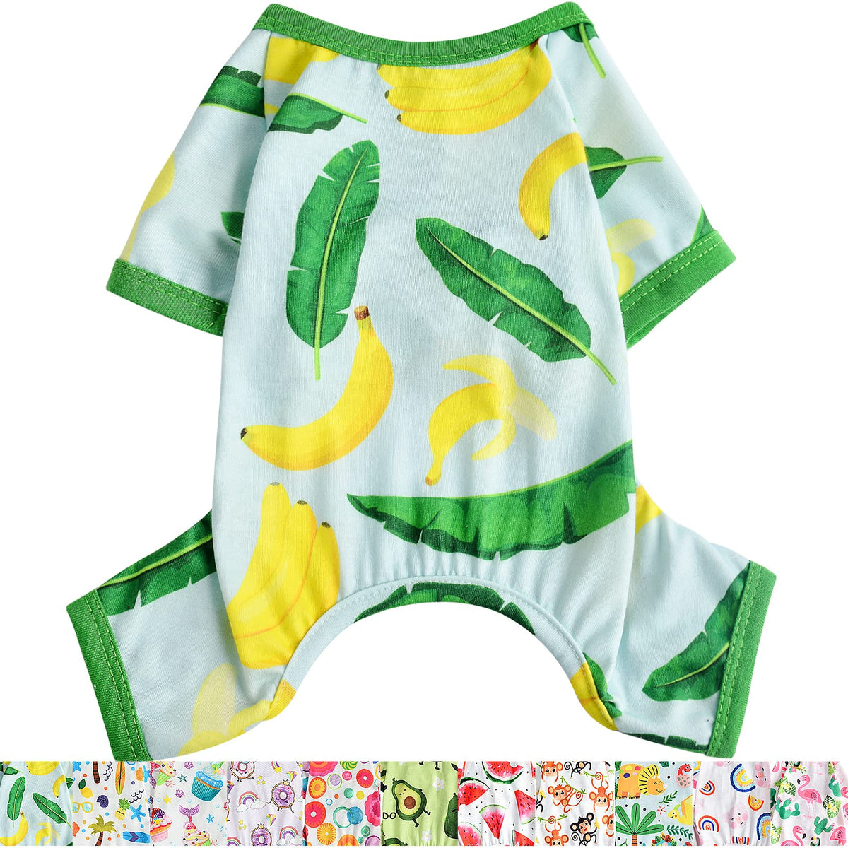 Summer,Spring Dog Bodysuit Dog Pajama Puppy Dog Jumpsuit Clothes Pet Clothes For Small Dogs ?Specifications: ?Material:Fabric ?Color : ?Pink,Green,Grey,Brown,Yellow,Blue,Red ?Pattern : Animal,Fruit ? Fit For Chihuahua, Poodle. Cup Poodle, Yorkshire Terrier, Bichon Frise, Cocker Spaniel, Pomeranian,Cat, Rabbit, Fox And Other Small Breed Dogs Outfit. Puppy Dog Pajamas Pet Jumpsuit Soft Puppy Rompers Pet Dog Cute Clothes Pajamas Puppy Bodysuits ?Package Includes: ?1X Dog Clothes Size Information X-Small Back Length:20Cm/7.87In, Bust:30Cm/11.81 In,Neck:20Cm/7.87 In,Fit In 2.2-4.4 Lbs. Small Back Length:25Cm/9.84 In, Bust:35Cm/13.78 In,Neck:25Cm/9.84 In,Fit In 4.4-6.6 Lbs. Medium Back Length:30Cm/11.81 In, Bust:40Cm/15.74 In,Neck:30Cm/11.81 In,Fit In 6.6-9.9 Lbs. Large Back Length:35Cm/13.78 In, Bust:45Cm/17.71 In,Neck:35Cm/13.78In,Fit In 9.9-14.3 Lbs. X-Large Back Length:40Cm/15.75 In, Bust:50Cm/19.68 In,Neck:40Cm/15.75 In,Fit In 14.3-17.6 Lbs. Xx-Large Back Length:45Cm/17.71 In, Bust:55Cm/21.65 In,Neck:45Cm/17.71 In,Fit In 17.6-22.3 Lbs. Dog Pajamas Soft Cat Clothes Cute Puppy Apparel Doggie Outfit Pet Pjs Pajamas Funtion: They Are Really Soft And Help Keep Him Warm, While The Pet Are Nice For Warmer Days.