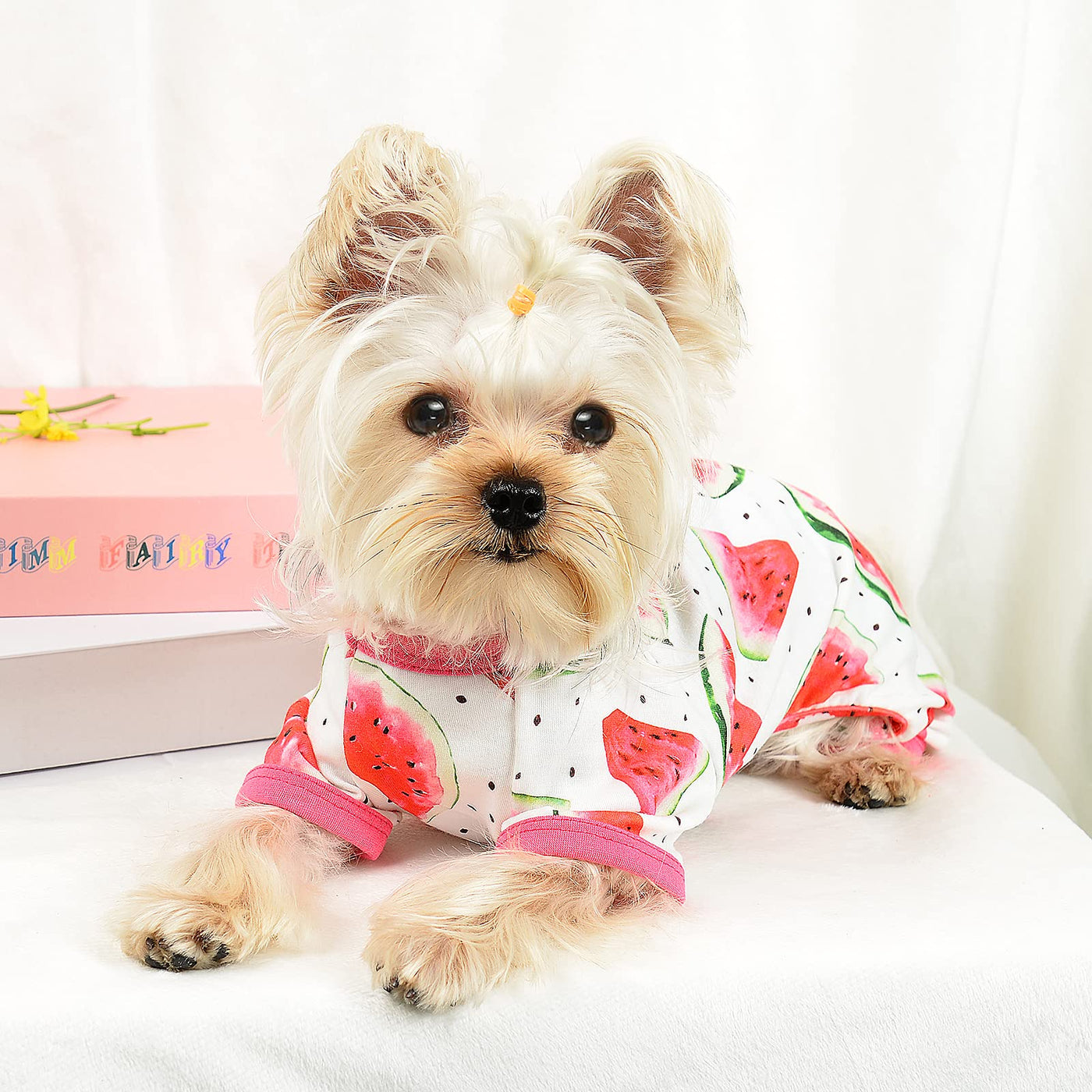 Dog Pajamas For Small Dogs, Chihuahua Pajamas, Puppy Clothes, Extra Small Puppy Pjs, Soft Pet Pis,Dog Shirts Chihuahua Yorkie Teacup Cat Clothing (Watermelon, Small)