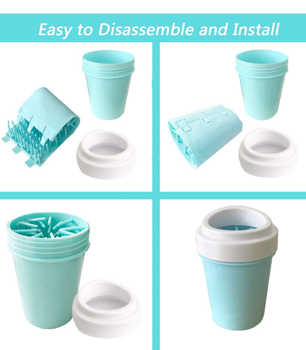 Please Read The Reference Size Of Dog Paw Washer Cup Carefully To Choose The Right Size For Your Dog Color:Bluegreen Pet Paw Cleaner For Dogs Smallpetite: Height 54 Inches, Diameter 37 Inches,Perfectly Sized For 15 - 23 Inch Wide Dog Foot Pet Paw Cleaner For Dogs Large: Height 65 Inch, Diameter 44 Inches,Perfectly Sized For 25-3 Inch Wide Dog Foot Pet Paw Washer: 1Pour Water Into The Cup 2 Add Gentle Soap To The Dog Paw Washer Cup (Optional) 3 Hold Your Dogas Paw While In The Cup 4 Gently Rotate The Cup Using Your Other Hand 5 Repeat For The Other Three Paws 6 Dry Paws With A Towel 7 Pour Out Dirty Water 8 Rinse With Water After Use What Will You Benefit From Portable Dog Feet Cleaner Dog Muddy Paw Cleaner:It Gets All The Mud And Debris Off Dogs Paws, Out From Under Their Nails, And Then You Just Have To Dry Their Paws Off Way Better Than The Old Muddirt Covered Towel Sitting By The Back Door Durability And Easy To Use: It Is Made Of Solid High-Grade Plastic And Are Very Easy To Clean Soft Silicone Washers Are Made Of Durable Non-Stick And Non-Dyed High-Quality Silica Gel Components Can Be Disassembled In Seconds When It Rains:When You Come Back To The House In A Rainy Or Muddy Place,The Paw Cleaner Can Clean The Stains And Dirty Mud On The Dogs Claws, So As To Avoid The Mud And Stains On The Ground And Save Your Cleaning Time Warm Tips Please Allow 1-2Cm Differs Due To Manual Measurement The Real Color Of Dog Paw Cleaner May Be Slightly Different From The Pictures, Caused By Different Computer Screens Resolution And Light Brightness