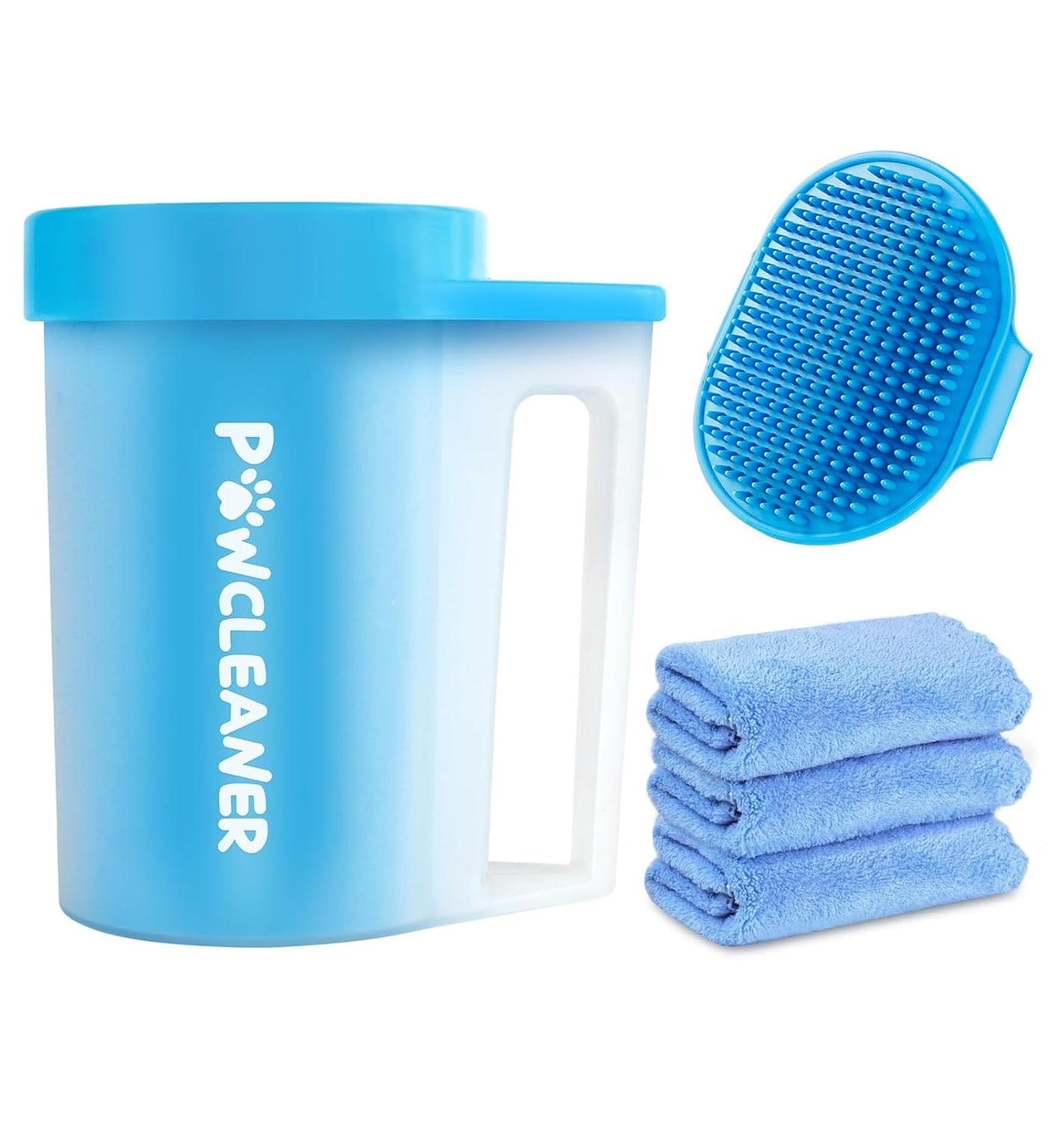 Dog Paw Cleaner For Dogs, (With 3Pcs Absorbent Towels & Adjustable Bath Brush) Dog Paw Washer, Pet Foot Cleaner (Blue, Medium)