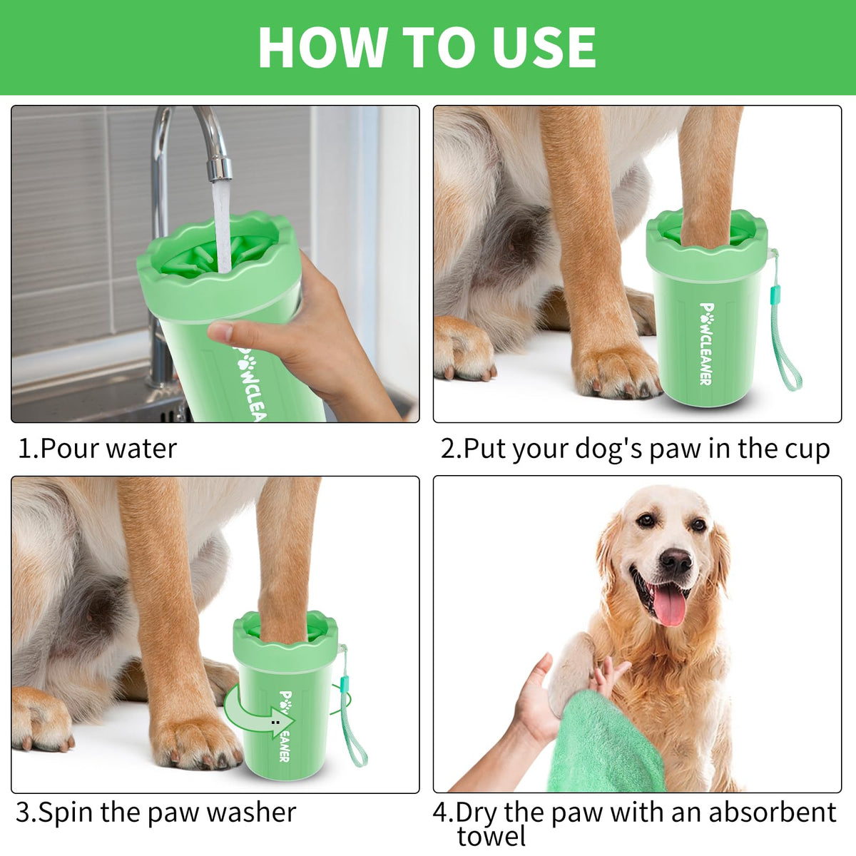Dog Paw Cleaner For Dogs, (With 3Pcs Absorbent Towels & Adjustable Bath Brush) Dog Paw Washer, Pet Foot Cleaner (Light Green, Me