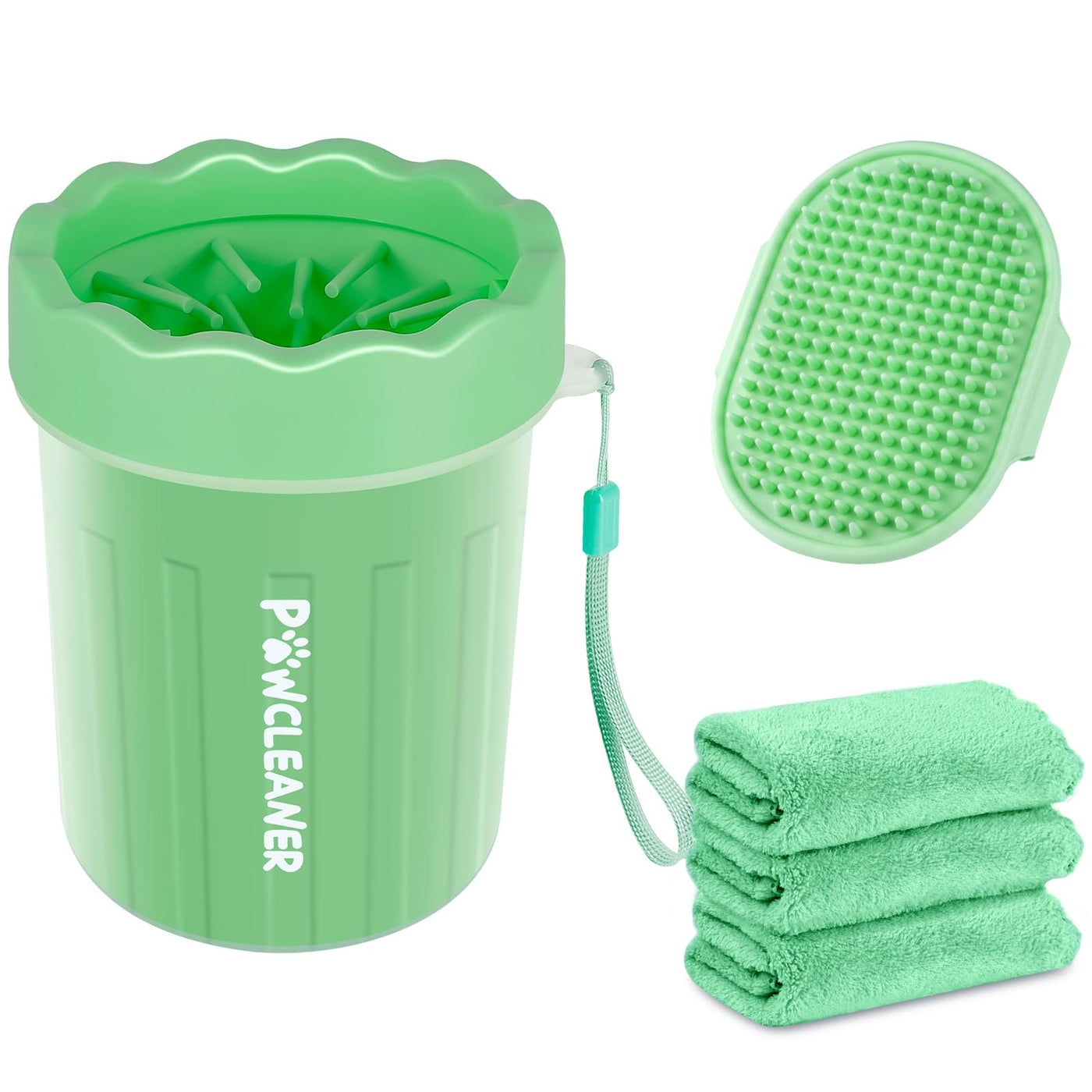 Dog Paw Cleaner For Dogs, (With 3Pcs Absorbent Towels & Adjustable Bath Brush) Dog Paw Washer, Pet Foot Cleaner (Light Green, Sm