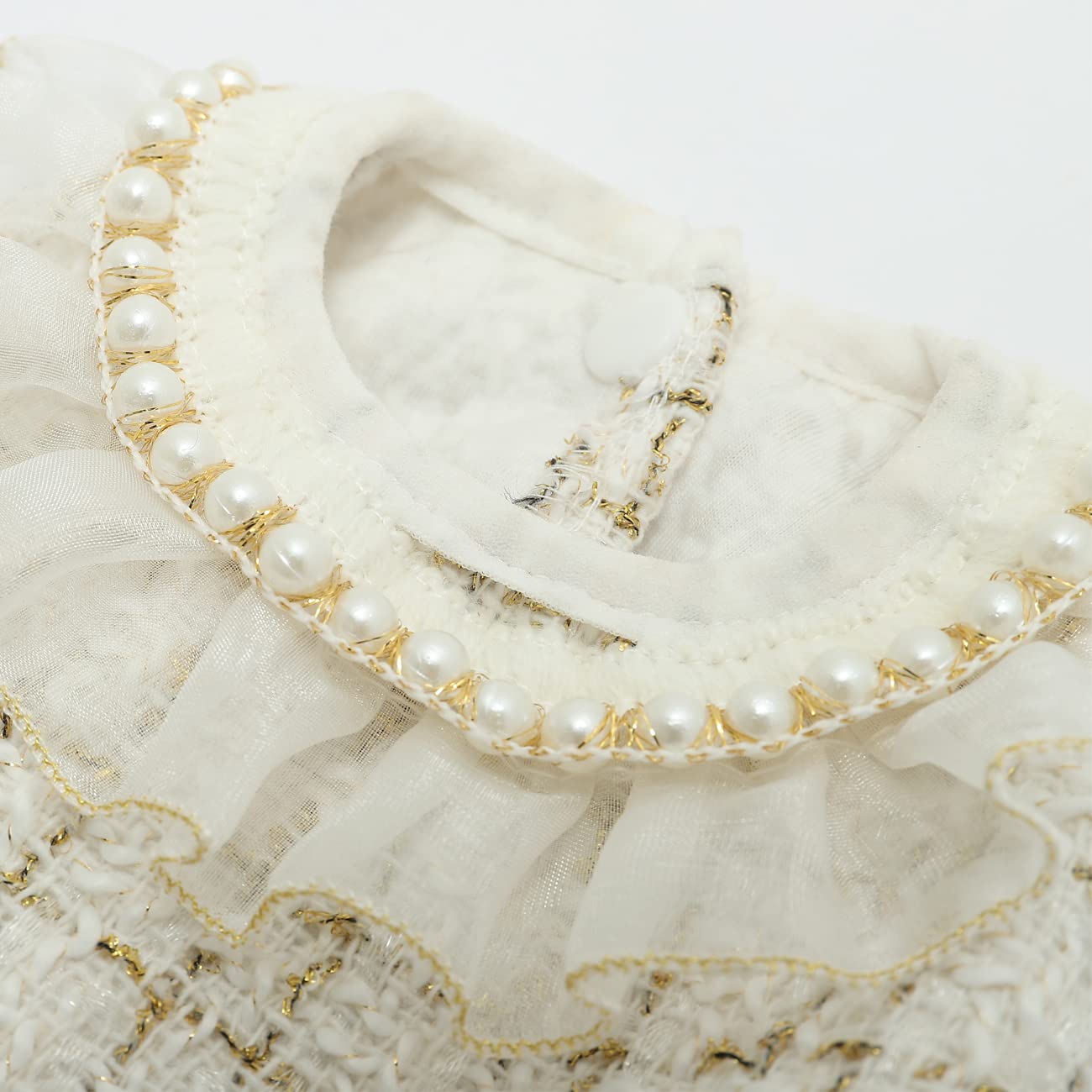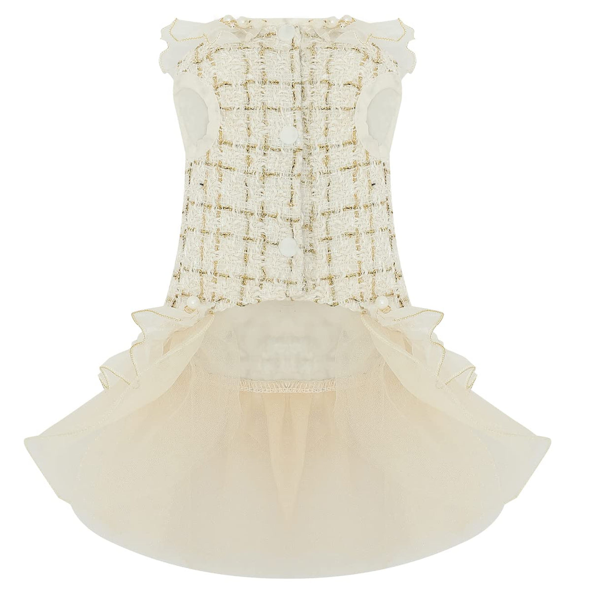Dog Plaid Dress Lace Tulle Tutu Princess Skirt With Pearls Accessory For Small Girl Dogs Christmas Holiday Wedding Birthday Party (White, S)