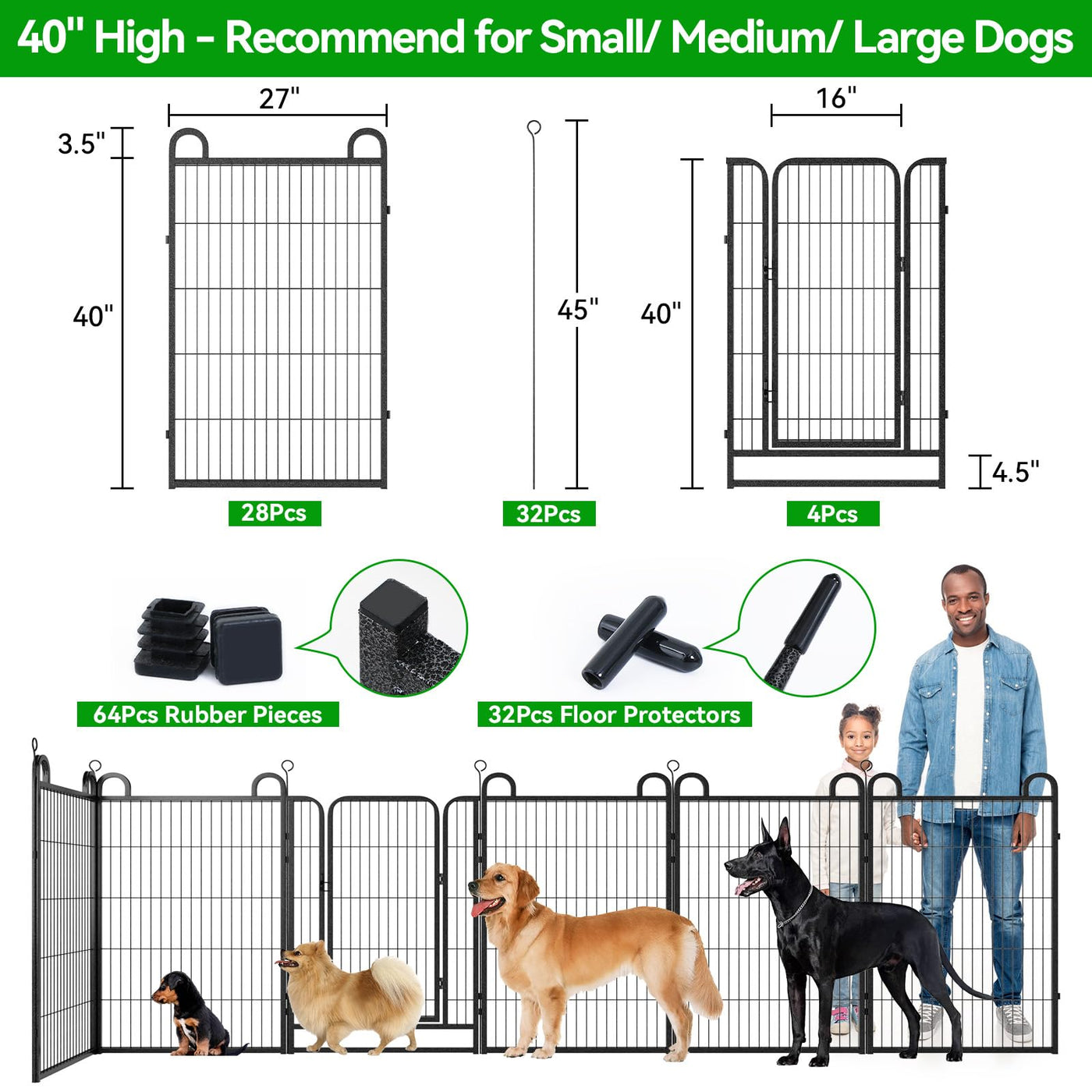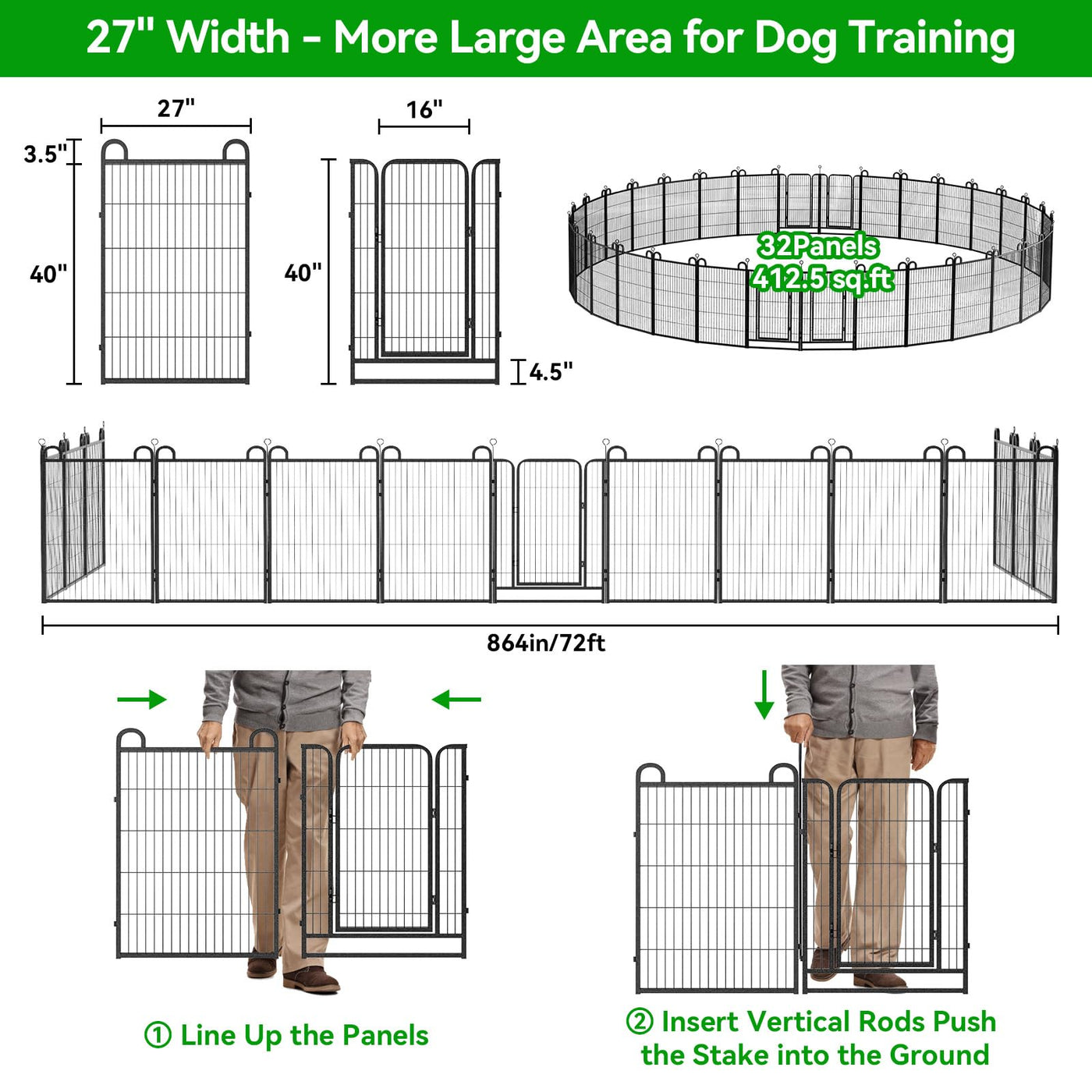 Dog Playpen Outdoor 32 Panels Heavy Duty Dog Fence 40'' Height Anti-Rust With Doors Portable For Rv Camping Yard, Total 72Ft, 41