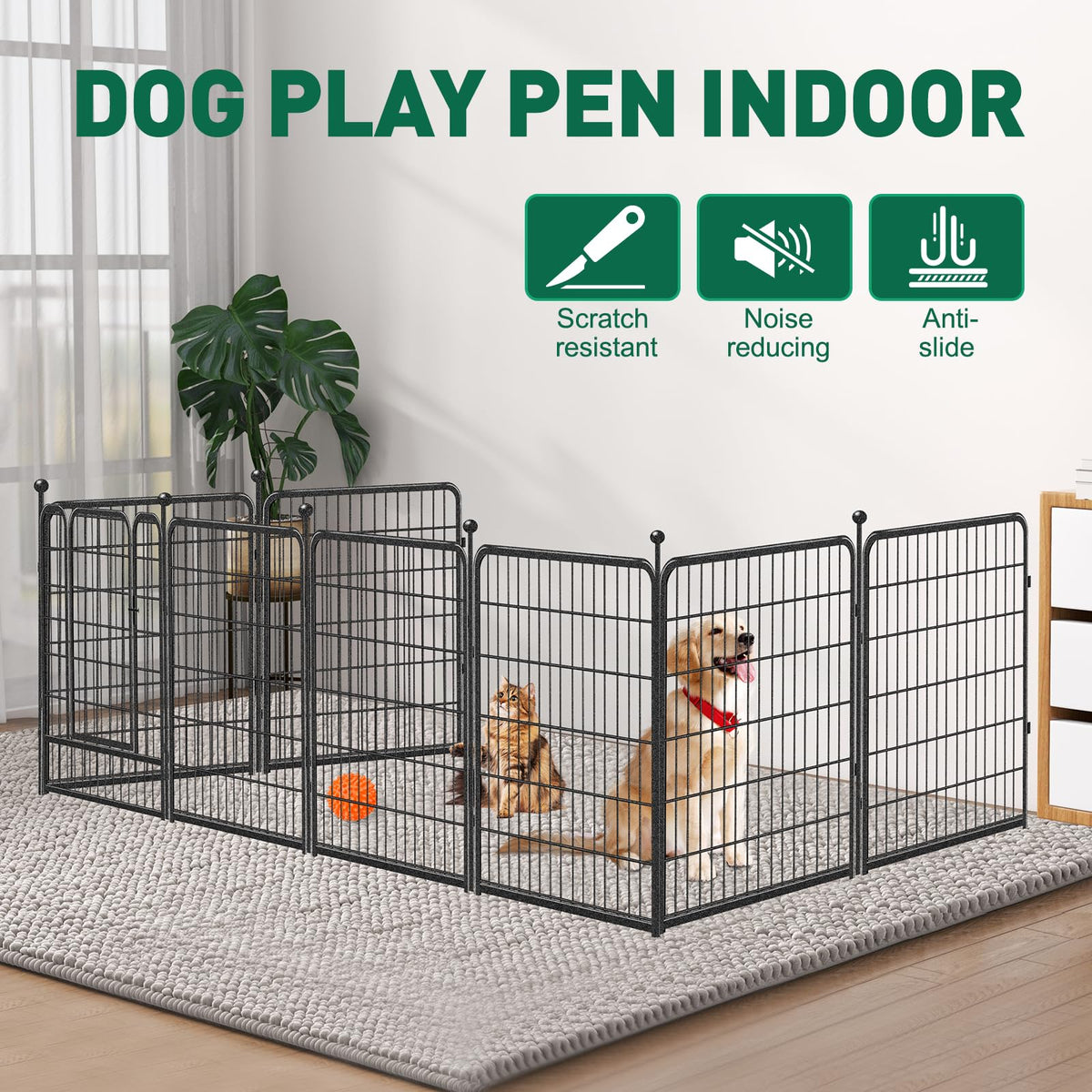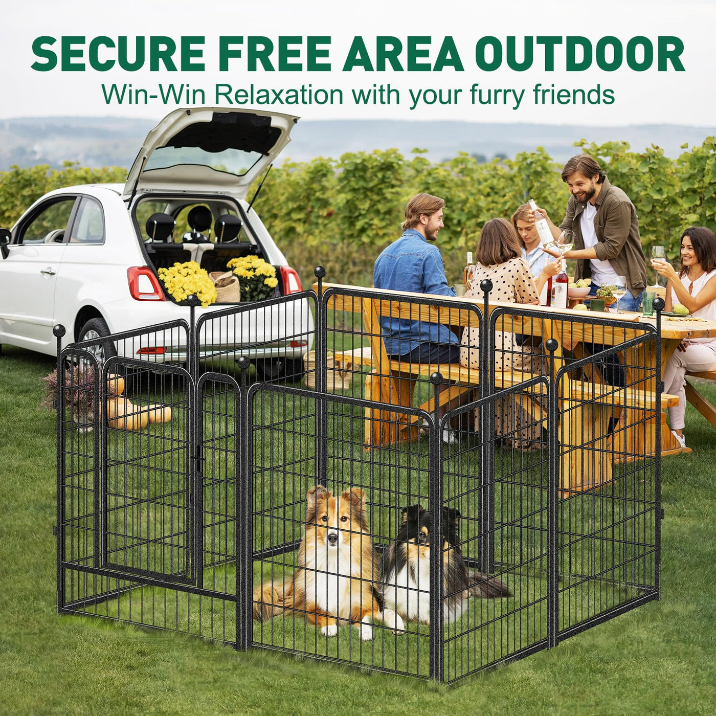 Dog Playpen Outdoor, 8 Panels 40' High Heavy Duty Metal Dog Pen, Pet Fence For Large/Medium/Small Dogs, With Doors Foldable Met