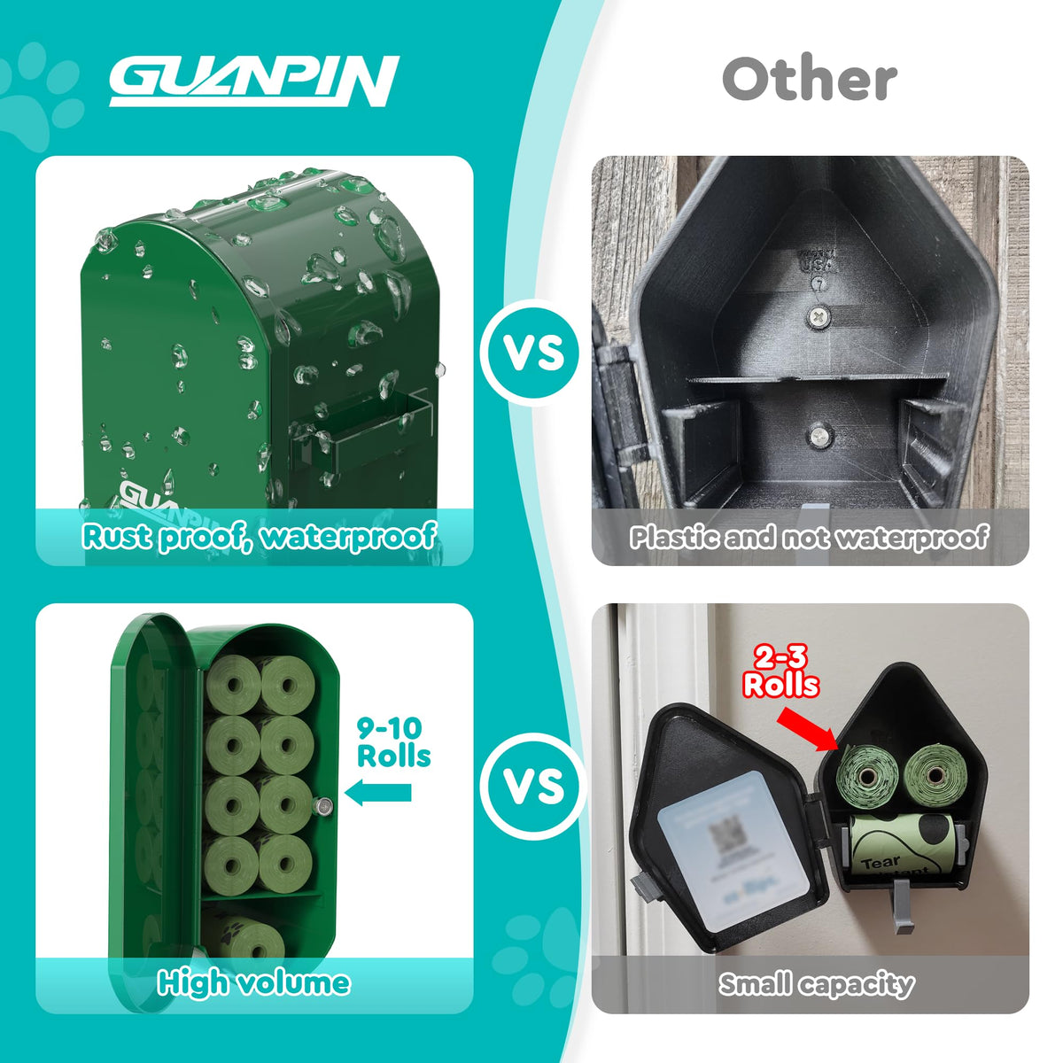With The Guanpin Pet Feces Bag Dispenser, You'Ll Never Forget To Have A Feces Bag For Your Dog Again! Other Dog Walkers Will Also Be Alerted When You Place It In Your Front Yard! This Pet Poop Bag Dispenser Has Another Unique Feature - The Sloped Roof Prevents Poop Bags From Getting Wet From Rain!