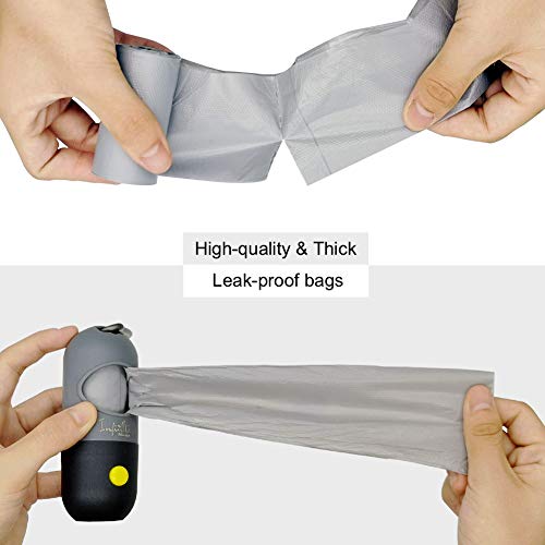 EXcELLENT AND cONVENIENT - Night-Time safety is important as you walk with your dog On the other hand low-light conditions make it harder to find and pick up the poop Our dog poop bag dispenser has a bright built-in LED flashlight that can help you to solve the problem easily and perfectly EASY TO AccESS - The bag dispenser can be refilled by any poop bag roll in a standard size And you could hang the bag holder anywhere like a leash dog collar backpack or key chain with three kinds of accessories in the package which are a high-quality metal clip two adjustable straps and a paw-shaped clip for holding filled poop bags BRIgHT LED LIgHT - Three free 0% Hg LR44 15V alkaline button batteries are inside of the poop bag dispenser flashlight and six extra LR44 batteries are included for replacement FYI please open the container and remove the plastic flake between batteries to activate the flashlight before first use DOg POOP BAgS - Each poop bag dispenser comes with a roll of 15 waste bags The extra-thick strong and 100% leak-proof poop bags with lavender scent can block the odor of the puppyAs poop DIMENSION - Bag dispenser 43 x 16 inches 11 x 4 cm Single Poop Bag 128 x 88 inches 32 x 22cm